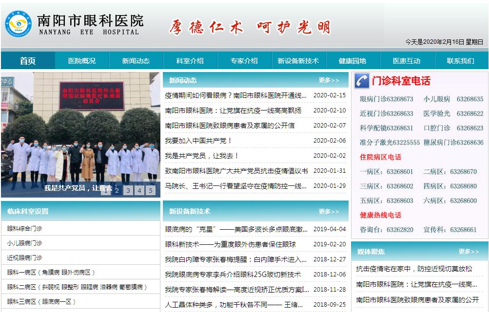南陽(yáng)市眼科醫(yī)院創(chuàng)建于1956年,是南陽(yáng)市衛(wèi)計(jì)委直屬二級(jí)??漆t(yī)院,是全市職工醫(yī)保、城鄉(xiāng)居民醫(yī)保定點(diǎn)的公立眼病??漆t(yī)院。醫(yī)院位于南陽(yáng)市市中心梅溪路與文化宮街交叉口。南陽(yáng)市眼科醫(yī)院醫(yī)院成立60年來,經(jīng)過幾代眼科醫(yī)院人堅(jiān)持不懈的努力和社會(huì)各界大力支持,實(shí)現(xiàn)了人才、技術(shù)和設(shè)備的同步發(fā)展,目前已成為集眼科醫(yī)療、教學(xué)、科研于一體的,具有一定規(guī)模的現(xiàn)代化眼病??漆t(yī)院。其??菩?yīng)輻射到與南陽(yáng)毗鄰的省、市、縣區(qū),是豫西南地區(qū)的眼科醫(yī)療、康復(fù)中心。醫(yī)院擁有醫(yī)術(shù)精湛、陣容強(qiáng)大的專家團(tuán)隊(duì),副高以上職稱的眼科專家42名,擁有當(dāng)今先進(jìn)的眼科診療設(shè)備200余臺(tái)(件)。如新一代鷹視“飛秒”U視全激光準(zhǔn)分子系統(tǒng)、美國(guó)產(chǎn)博士倫23G微創(chuàng)、高速玻璃體切割儀、博士倫白內(nèi)障微切口超聲乳化儀、波前像差儀,意大利產(chǎn)角膜地形圖儀、角膜測(cè)厚儀,角膜共聚焦顯微鏡、德國(guó)產(chǎn)OCT(眼用CT)、眼電生理儀,法國(guó)產(chǎn)眼底激光治療儀,日本產(chǎn)眼底熒光造影儀、超聲生物顯微鏡等。醫(yī)院設(shè)有一個(gè)眼病綜合門診,一個(gè)口腔病綜合門診,6個(gè)眼病??撇^(qū),6個(gè)眼病治療矯治中心,20個(gè)眼病專業(yè)學(xué)組。它們分別角膜病、眼外傷科(一病區(qū));眼眶病、斜視及整形美容科(二病區(qū));眼底病一科(三病區(qū));白內(nèi)障青光眼科(四病區(qū));白內(nèi)障科(五病區(qū));眼底病二科(六病區(qū));準(zhǔn)分子激光近視矯治中心;小兒眼病治療中心;視光學(xué)(醫(yī)學(xué)驗(yàn)光配鏡)中心。醫(yī)院實(shí)際開放床位400張,病房設(shè)施齊全、功能完備,能為病人提供滿意的住院醫(yī)療服務(wù)。醫(yī)院實(shí)行“人才興院、科技強(qiáng)院”的辦院宗旨和樹名醫(yī)、創(chuàng)名科、建名院的“三名戰(zhàn)略”。確定“科有特色、人有專長(zhǎng)、專中求強(qiáng)、強(qiáng)中求精”為發(fā)展目標(biāo)。對(duì)眼病的治療實(shí)行“專家、???、專病、專治”原則,治療效果達(dá)到國(guó)內(nèi)同步的水平。要求各項(xiàng)診療技術(shù)不斷向“更高、更精”領(lǐng)域邁進(jìn)。目前白內(nèi)障科開展的微切口超聲乳化治療白內(nèi)障技術(shù),只需1.8毫米的切口,就可順利完成白內(nèi)障摘除和人工晶體植入手術(shù),以創(chuàng)傷輕、切口小,散光小、術(shù)后視力恢復(fù)快并且穩(wěn)定的特點(diǎn),是白內(nèi)障患者復(fù)明手術(shù)的選擇。眼底病科開展的玻璃體視網(wǎng)膜病變手術(shù),是南陽(yáng)眼科界能夠自主開展該項(xiàng)手術(shù)的科室,該手術(shù)為許多玻璃體視網(wǎng)膜病變患者留住了寶貴的視力。青光眼科開展24小時(shí)眼壓測(cè)量和難治性青光眼的治療為病人扼住了“致盲殺手”。斜視上瞼下垂美容整形科的專家采用的矯治術(shù)式,在為患者改善外觀的同時(shí),也為他們重塑了自信。角膜病眼外傷科、小兒眼病中心、醫(yī)學(xué)整形美容和眼眶病等科開展的醫(yī)療目前已形成了具有南陽(yáng)市眼科醫(yī)院特色的醫(yī)療技術(shù)服務(wù)體系,使眼病患者不用走出南陽(yáng),就能接受到和上級(jí)醫(yī)院同樣技術(shù)水平、同等診療效果的醫(yī)療服務(wù)。醫(yī)院視光學(xué)中心開展的醫(yī)學(xué)驗(yàn)光、科學(xué)配鏡,不僅使配鏡質(zhì)量有保障,更重要的是,它使眼鏡成為一種對(duì)眼睛有保健和治療作用的“光學(xué)藥物”,從而保護(hù)了佩戴者眼睛的健康。醫(yī)院的鷹視飛秒u視全激光準(zhǔn)分子近視治療系統(tǒng),實(shí)現(xiàn)了近視手術(shù)全程無刀,達(dá)到了術(shù)后視覺質(zhì)量完美的境界,已成為年輕人招警、參軍、升學(xué)、招公務(wù)員,做近視手術(shù)的選擇。醫(yī)院在為病人服務(wù)上堅(jiān)持“一切以病人為中心”的原則,實(shí)行“行管圍著一線轉(zhuǎn)、醫(yī)技圍著臨床轉(zhuǎn)、全院圍著病人轉(zhuǎn)”的“三轉(zhuǎn)政策”,使病人感到舒心、放心、安心。加大醫(yī)院硬件建設(shè)力度,醫(yī)院根據(jù)市衛(wèi)計(jì)委提出的“打造溫馨就醫(yī)環(huán)境,構(gòu)建和諧醫(yī)患關(guān)系”要求,為病人營(yíng)造出了“綠、潔、暢、亮、美”的就醫(yī)環(huán)境。近年來,南陽(yáng)市眼科醫(yī)院在各級(jí)衛(wèi)生行政部門的正確領(lǐng)導(dǎo)下,醫(yī)院的各項(xiàng)工作取得了顯著成績(jī)。得到了上級(jí)領(lǐng)導(dǎo)充分肯定先后被國(guó)家、省、市授予“全國(guó)三項(xiàng)康復(fù)工作先進(jìn)單位”、“殘疾人康復(fù)之家”、“視覺第一、中國(guó)行動(dòng)”先進(jìn)單位、“河南省白內(nèi)障扶貧助困”先進(jìn)單位、“河南省級(jí)文明單位”等榮譽(yù)稱號(hào)20余項(xiàng)。