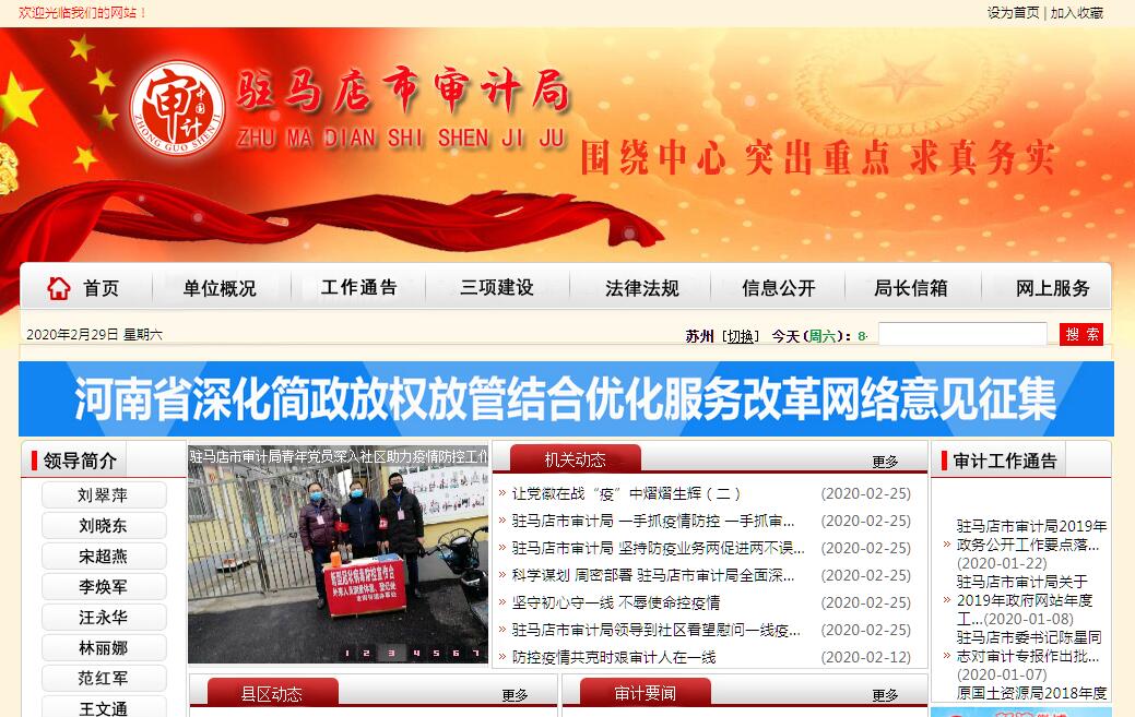駐馬店市審計局主要職責:(一)貫徹執(zhí)行國家、省、市有關審計工作的方針政策和法律法規(guī),起草有關地方性法規(guī)、規(guī)章草案,制定并組織實施審計工作發(fā)展規(guī)劃、專業(yè)領域審計工作規(guī)劃和年度審計計劃,對直接審計、調查和核查的事項依法進行審計評價,做出審計決定或提出審計建議。(二)負責對市本級財政收支和法律法規(guī)規(guī)定屬于審計監(jiān)督范圍的財務收支的真實、合法和效益進行審計監(jiān)督,維護財政經(jīng)濟秩序,提高財政資金使用效益,促進廉政建設,保障國民經(jīng)濟和社會健康發(fā)展,對審計、專項審計調查的結果承擔責任,并負有督促被審計單位整改的責任。(三)向市人民政府和省審計廳提出年度市本級預算執(zhí)行和其他財政收支情況的審計結果報告。受市人民政府委托向市人大常委會提出市本級預算執(zhí)行和其他財政收支情況的審計工作報告、審計發(fā)現(xiàn)問題的糾正和處理結果報告。向市人民政府和省審計廳報告對其他事項的審計和專項審計調查情況及結果。依法向社會公布審計結果。向市人民政府有關部門和各縣(市、區(qū))人民政府通報審計情況和審計結果。(四)直接審計下列事項,出具審計報告,在法定職權范圍內做出審計決定或向有關主管機關提出處理處罰的建議:1.市本級預算執(zhí)行情況和其他財政收支,市本級各部門(含直屬單位)預算的執(zhí)行情況、決算和其他財政收支。2. 各縣(市、區(qū))人民政府預算的執(zhí)行情況、決算和其他財政收支,財政轉移支付資金。3. 使用市財政資金的事業(yè)單位和社會團體的財務收支。4. 市人民政府投資和以市人民政府投資為主的建設項目的預算執(zhí)行情況和決算。5. 市屬國有企業(yè)和金融機構以及市人民政府規(guī)定的市屬國有資本占控股或主導地位的企業(yè)的資產、負債和損益。6.市人民政府部門、各縣(市、區(qū))人民政府管理和其他單位受市人民政府及其部門委托管理的社會保障基金、社會捐贈資金以及其他有關基金、資金的財務收支。7. 國際組織和外國政府貸款、援助項目的財務收支。8.法律法規(guī)規(guī)定應當由市審計局審計的其他事項。(五)按規(guī)定對各縣(市、區(qū))黨政主要負責人和市委、市政府部門主要負責人及依法屬于市審計局審計監(jiān)督對象的其他單位主要負責人實施經(jīng)濟責任審計。(六)組織實施對財經(jīng)法律、法規(guī)、規(guī)章、政策和宏觀調控措施執(zhí)行情況、財政預算管理或國有資產管理使用等與市本級財政收支有關的特定事項進行專項審計調查。(七)依法檢查審計決定執(zhí)行情況,督促糾正和處理審計發(fā)現(xiàn)的問題,依法辦理被審計單位對審計決定提請行政復議、行政訴訟或市人民政府裁決中的有關事項。協(xié)助配合有關部門查處相關重大案件。(八)指導和監(jiān)督內部審計工作,指導農村集體經(jīng)濟審計工作,核查社會審計機構對依法屬于審計監(jiān)督對象的單位出具的相關審計報告。(九)與各縣(市、區(qū))人民政府共同領導各縣(市、區(qū))審計機關。依法領導和監(jiān)督下級審計機關的業(yè)務,組織下級審計機關實施特定項目的專項審計或審計調查,糾正或責成糾正下級審計機關違反國家和省、市規(guī)定作出的審計決定。按照干部管理權限協(xié)管各縣(市、區(qū))審計機關負責人。(十)組織審計市駐外非經(jīng)營性機構的財務收支,依法通過適當方式組織審計市屬國有企業(yè)和金融機構的境外資產、負債和損益。(十一)承辦市人民政府和上級審計機關交辦的其他事項。