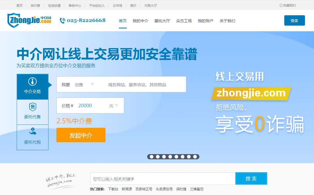 中介網(wǎng)是國內(nèi)靠譜的域名、網(wǎng)站中介交易平臺(tái),提供域名交易,網(wǎng)站中介,域名代購,域名停放,域名經(jīng)紀(jì)等服務(wù),專注互聯(lián)網(wǎng)資產(chǎn)中介,Zhongjie.com!中介靠譜!隨著互聯(lián)網(wǎng)資產(chǎn)的交易日益增多,很多時(shí)候需要一個(gè)可靠的第三方平臺(tái)來進(jìn)行中介交易,以保障交易的順利進(jìn)行,在這種強(qiáng)需求的大環(huán)境下,南京眾杰網(wǎng)絡(luò)科技有限公司成立了力求讓中介交易更安全,更簡單的中介網(wǎng)項(xiàng)目,立志服務(wù)好互聯(lián)網(wǎng)廣大從業(yè)人員保證好互聯(lián)網(wǎng)買賣雙方的利益。Zhongjie.com專業(yè)提供域名、網(wǎng)站、自媒體賬號(hào)(包括但不限于微信公眾號(hào)、今日頭條號(hào)、百度百家號(hào)、搜狐自媒體號(hào)等)、游戲賬號(hào)、流量買賣、程序源碼、建站美工等交易中介服務(wù)。Zhongjie.com作為互聯(lián)網(wǎng)資產(chǎn)中介平臺(tái),力求讓線上交易更加安全高效,為買賣雙方提供全方位的交易保護(hù)。