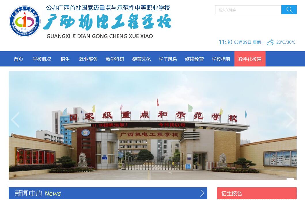 廣西機(jī)電工程學(xué)校創(chuàng)辦于一九六O年四月,一九八四年七月學(xué)校獲得農(nóng)業(yè)部安排的“世界銀行”教育科研貸款。一九八八年十月被農(nóng)業(yè)部授予“校內(nèi)實(shí)習(xí)基地建設(shè)先進(jìn)單位”;一九九O年農(nóng)業(yè)部農(nóng)業(yè)中專辦學(xué)水平評(píng)估學(xué)校為A等學(xué)校,一九九一年一月被自治區(qū)人民政府確定為“省部級(jí)重點(diǎn)中?!?;二OOO年五月學(xué)校再次被國家教育部等確定為“國家級(jí)重點(diǎn)中?!薄6﨩O四年三月,學(xué)校被教育部確定為“承擔(dān)數(shù)控技術(shù)應(yīng)用專業(yè)領(lǐng)域技能型緊缺人才培養(yǎng)培訓(xùn)任務(wù)的職業(yè)學(xué)?!薄^k學(xué)歷史悠久:四十多年來,該校堅(jiān)持走“質(zhì)量求生存、求發(fā)展、求效益,創(chuàng)名牌學(xué)?!钡霓k學(xué)路子,以“培養(yǎng)辦學(xué)歷史悠久:四十多年來,該校堅(jiān)持走“質(zhì)量求生存、求發(fā)展、求效益,創(chuàng)名牌學(xué)?!钡霓k學(xué)路子,以“培養(yǎng)學(xué)生成人成才,促進(jìn)學(xué)生就業(yè)創(chuàng)業(yè)”為辦學(xué)目標(biāo),按照“學(xué)生能力教育面向職業(yè)群,學(xué)生素質(zhì)培養(yǎng)面向?qū)捇A(chǔ)”的原則,構(gòu)建了富有特色的現(xiàn)代教學(xué)模式。辦出了職業(yè)教育的特色,創(chuàng)出了學(xué)校的品牌,學(xué)校在社會(huì)上享有較高的聲譽(yù)。為社會(huì)培養(yǎng)了16000多名富有創(chuàng)新精神和實(shí)踐能力的高素質(zhì)人才。為廣西的社會(huì)和經(jīng)濟(jì)發(fā)展做出了巨大貢獻(xiàn)。學(xué)校地理位置優(yōu)越:地處廣西首府南寧市,位于南寧市安吉大道16號(hào),交通便利,距火車站10分鐘路程,火車站乘32路、瑯東客運(yùn)站乘206路603路、江南客運(yùn)站乘41路、西鄉(xiāng)塘汽車站乘54路、安吉客運(yùn)站乘2路等到安吉路口站下車約100米即到學(xué)校。辦學(xué)條件良好、教學(xué)設(shè)施齊備先進(jìn):校園占地面積125畝,環(huán)境幽雅景色宜人。建筑面積約7萬平方米,圖書館藏書15萬冊(cè)。教學(xué)設(shè)備齊全精良,學(xué)校目前擁有包括從美國、日本、德國等國家進(jìn)口的先進(jìn)設(shè)備在內(nèi)的38間實(shí)驗(yàn)室和能容納200人同時(shí)進(jìn)行車、銑、刨、鉗、焊等工種實(shí)習(xí)的校內(nèi)實(shí)習(xí)工廠和實(shí)驗(yàn)室,辦有汽車駕駛培訓(xùn)學(xué)校---南寧市吉安汽車培訓(xùn)學(xué)校,擁有500多臺(tái)先進(jìn)計(jì)算機(jī),文體設(shè)施齊全,公寓式學(xué)生宿舍,每間宿舍配有電話。校內(nèi)實(shí)驗(yàn)實(shí)習(xí)建筑面積12281平方米,設(shè)備總值1400多萬元。學(xué)?,F(xiàn)有在校生3858人,在職教職工210人,教師總數(shù)131人,專任教師121人;教師中研究生學(xué)歷12人(在讀18人),本科學(xué)歷88人,其中高級(jí)技術(shù)職稱25 人,中級(jí)職稱82人,雙師型教師56人。有多位教師參加全國各專業(yè)20多種教材、教學(xué)大綱等的編寫、審核工作,教學(xué)科研成果頗豐。學(xué)校現(xiàn)設(shè)立有機(jī)械工程專業(yè)科、電子工程專業(yè)科和信息與管理專業(yè)科三個(gè)專業(yè)科。開設(shè)有模具設(shè)計(jì)與制造專業(yè)、數(shù)控技術(shù)應(yīng)用、機(jī)電應(yīng)用技術(shù)、機(jī)電設(shè)備安裝與維修、電子技術(shù)應(yīng)用、汽車摩托車運(yùn)用與維修、電氣技術(shù)應(yīng)用、機(jī)械制造與控制、制冷和空調(diào)設(shè)備運(yùn)用與維修、計(jì)算機(jī)及應(yīng)用、電子商務(wù)、通信技術(shù)、等適應(yīng)社會(huì)和市場(chǎng)需求的專業(yè)14個(gè)。其中,模具設(shè)計(jì)與制造專業(yè)、電子技術(shù)應(yīng)用、汽車摩托車運(yùn)用與維修等三個(gè)專業(yè)被廣西教育廳確定為自治區(qū)級(jí)示范性專業(yè)。