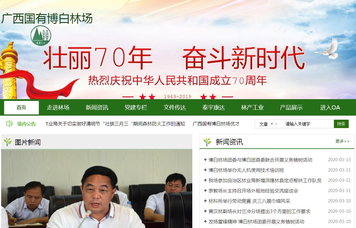 廣西國有博白林場創(chuàng)建于1962年,是自治區(qū)林業(yè)局直屬國有大型林場,正處級事業(yè)單位,廣西現(xiàn)代林業(yè)產(chǎn)業(yè)龍頭企業(yè),實行事業(yè)單位企業(yè)化管理,主營速豐林、人造板、苗木等產(chǎn)業(yè),是國家木材戰(zhàn)略儲備重要基地和速生豐產(chǎn)林培育基地。場部位于廣西玉林市博白縣,內(nèi)設(shè)11個職能科室、下轄9個營林分場、以及年產(chǎn)25萬m3中(高)密度纖維板的廣西浩林人造板有限公司、年產(chǎn)8萬m3膠合板的廣西萬林林產(chǎn)業(yè)責任有限公司和一個年產(chǎn)3000萬株以上各類苗木的大型林木良種繁育基地,合作經(jīng)營廣西桉盛豐肥業(yè)有限公司和廣西瀚林木業(yè)有限責任公司。林場現(xiàn)有員工2300人。林場經(jīng)營總面積68.3萬畝,活立木蓄積量181萬m3,森林覆蓋率82.8%。2017年,博白林場資產(chǎn)總額27億元,綜合實力排名廣西林業(yè)前列。博白林場始終堅持“以林為本、多種經(jīng)營、綜合利用”的發(fā)展思路,深入推進一、二、三產(chǎn)業(yè)協(xié)調(diào)發(fā)展,經(jīng)濟實力不斷增強?!笆濉逼陂g,林場將按照規(guī)劃藍圖和發(fā)展方向,進一步解放思想,趕超跨越,以更加昂揚的斗志和更加務(wù)實的作風,開拓創(chuàng)新,銳意進取,努力實現(xiàn)科學發(fā)展、跨越發(fā)展、和諧發(fā)展,構(gòu)建現(xiàn)代化新林場。