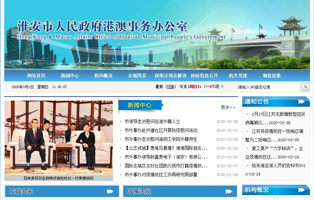 淮安市政府外事工作辦公室負(fù)責(zé)貫徹落實中央關(guān)于外事工作的方針政策和省、市委的決策部署,在履行職責(zé)過程中堅持和加強(qiáng)黨對外事工作的集中統(tǒng)一領(lǐng)導(dǎo)。其主要職責(zé)是:(一)貫徹執(zhí)行黨和國家對外方針政策和法律法規(guī),落實市委、市政府有關(guān)外事工作的指示和決定,負(fù)責(zé)政策指導(dǎo)、業(yè)務(wù)考核、監(jiān)督檢查工作,歸口管理、統(tǒng)籌協(xié)調(diào)全市各領(lǐng)域?qū)ν饨涣髋c合作,起草外事工作的有關(guān)規(guī)范性文件。(二)研究分析各國發(fā)展動態(tài)和政策走向,圍繞我市經(jīng)濟(jì)建設(shè)、社會發(fā)展和對外開放,為市委、市政府提供外事工作決策的建議。負(fù)責(zé)我市外事干部和涉外人員的教育培訓(xùn)工作,會同有關(guān)部門進(jìn)行對外宣傳和群眾性外事教育。(三)負(fù)責(zé)全市因公出國(境)工作的歸口管理、協(xié)調(diào)服務(wù)和監(jiān)督工作。在授權(quán)范圍內(nèi),審核或?qū)徟嚓P(guān)人員因公臨時出國(境)事項,承擔(dān)我市因公出國(境)人員的證照申辦業(yè)務(wù)。會同有關(guān)部門落實外事紀(jì)律及保密制度。(四)統(tǒng)籌安排并承辦市委、市人大常委會、市政府、市政協(xié)領(lǐng)導(dǎo)同志的出訪和國內(nèi)外事活動事項。(五)指導(dǎo)有關(guān)部門管理來我市的外國人工作,依法保障來我市外國人的合法權(quán)益。指導(dǎo)、協(xié)調(diào)、管理我市社會組織對外交往事宜。會同有關(guān)部門協(xié)調(diào)處理重要涉外事件和案件,協(xié)調(diào)指導(dǎo)我市境外機(jī)構(gòu)、公民安全與合法權(quán)益保護(hù)工作。指導(dǎo)全市涉外應(yīng)急事務(wù)處理;歸口管理外事服務(wù)工作。(六)貫徹執(zhí)行中央對香港、澳門的政策規(guī)定,統(tǒng)籌協(xié)調(diào)和歸口管理我市與香港、澳門特別行政區(qū)往來工作。(七)管理來我市采訪的外國記者;指導(dǎo)我市有關(guān)部門或單位做好外國記者采訪活動的安排。(八)承辦我市對外交往事務(wù),歸口管理我市與外國友好市(縣)、友好城市和其他單位結(jié)好與交往事宜。指導(dǎo)我市民間對外交往工作。承擔(dān)授予外國人榮譽(yù)稱號、名譽(yù)職務(wù)和給予重要獎勵等有關(guān)工作。(九)承擔(dān)我市與外國有關(guān)領(lǐng)事機(jī)構(gòu)、國際組織的業(yè)務(wù)聯(lián)系和交涉工作。審核管理在我市舉辦的國際會議。(十)接待來我市訪問的黨賓、國賓和其他重要外賓。承辦外國有關(guān)人員來訪事宜。指導(dǎo)全市重要外事活動的禮賓工作;會同有關(guān)部門做好涉外參觀單位的建設(shè)工作。(十一)代管市人民對外友好協(xié)會。(十二)完成市委、市政府交辦的其他任務(wù)。