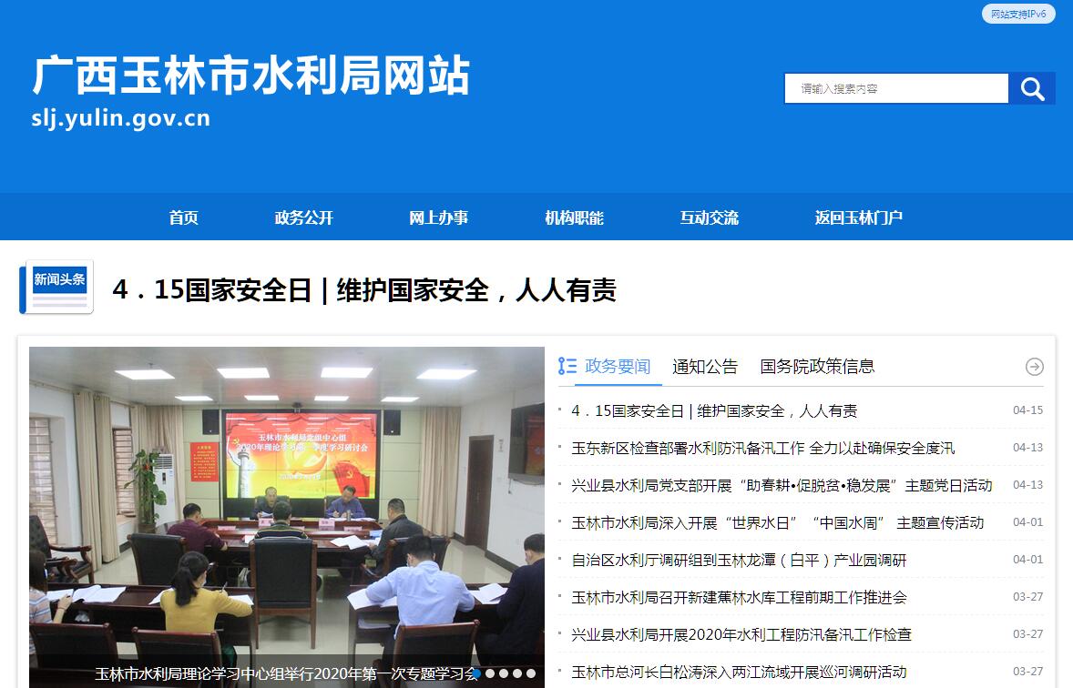 玉林市水利局是玉林市人民政府主管全市水利工作的職能部門。其主要職責是:(一)負責保障全市水資源的合理開發(fā)利用。擬訂全市水利戰(zhàn)略規(guī)劃和政策,起草有關玉林市水利地方性法規(guī)、地方政府規(guī)章草案,組織編制全市水資源戰(zhàn)略規(guī)劃、玉林市確定的重要江河湖泊流域綜合規(guī)劃、防洪規(guī)劃等重大水利規(guī)劃。(二)負責全市生活、生產(chǎn)經(jīng)營和生態(tài)環(huán)境用水的統(tǒng)籌和保障。組織實施最嚴格水資源管理制度,實施全市水資源的統(tǒng)一監(jiān)督管理,擬訂全市水中長期供求規(guī)劃、水量分配方案并監(jiān)督實施。負責重要區(qū)域以及重要水利工程的水資源調度。組織實施取水許可、水資源論證和防洪論證制度,指導開展水資源有償使用工作。指導水利行業(yè)供水和鄉(xiāng)鎮(zhèn)供水工作。(三)按規(guī)定制定全市水利工程建設有關制度并組織實施,負責提出全市水利固定資產(chǎn)投資規(guī)模、方向、具體安排建議并組織指導實施,按玉林市人民政府規(guī)定權限審批、核準國家、自治區(qū)和玉林市規(guī)劃內(nèi)和年度計劃規(guī)模內(nèi)固定資產(chǎn)投資項目,提出中央、自治區(qū)和玉林市水利資金安排建議并負責項目實施的監(jiān)督管理。(四)指導全市水資源保護工作。組織編制并實施全市水資源保護規(guī)劃。指導飲用水水源保護有關工作,指導地下水開發(fā)利用和地下水資源管理保護。組織指導地下水超采區(qū)綜合治理。(五)負責全市節(jié)約用水工作。擬訂全市節(jié)約用水政策,組織編制節(jié)約用水規(guī)劃并監(jiān)督實施。組織實施用水總量控制等管理制度,指導和推動節(jié)水型社會建設工作。(六)指導全市水利設施、水域及其岸線的管理、保護與綜合利用。組織指導全市水利基礎設施網(wǎng)絡建設。指導全市重要江河湖泊的治理、開發(fā)和保護。指導全市河湖水生態(tài)保護與修復、河湖生態(tài)流量水量管理以及河湖水系連通工作。(七)指導監(jiān)督全市水利工程建設與運行管理。指導具有控制性的和跨縣(市、區(qū))的重要水利工程建設與運行管理。指導監(jiān)督病險水庫、水閘、江河堤防的除險加固。負責直屬水庫工程運行管理。(八)負責全市水土保持工作。擬訂全市水土保持規(guī)劃并監(jiān)督實施,組織實施水土流失的綜合防治、監(jiān)測預報并定期公告。負責生產(chǎn)建設項目水土保持監(jiān)督管理工作,指導國家、自治區(qū)和玉林市水土保持建設項目的實施。(九)指導全市農(nóng)村水利水電工作。組織開展大中型灌排工程規(guī)劃、建設與改造。指導農(nóng)村飲水安全工程建設管理工作,指導節(jié)水灌溉有關工作。指導農(nóng)村水利改革創(chuàng)新和社會化服務體系建設。指導全市農(nóng)村水能資源開發(fā)、小水電改造和水電農(nóng)村電氣化工作。(十)組織全市重大涉水違法事件的查處,協(xié)調跨縣(市、區(qū))的水事糾紛,指導水政監(jiān)察和水行政執(zhí)法。組織開展水利行業(yè)質量監(jiān)督工作。依法負責水利行業(yè)安全生產(chǎn)工作,組織指導水庫、水電站大壩、農(nóng)村水電站的安全監(jiān)管。組織指導全市水利建設市場的監(jiān)督管理和水利建設市場信用體系建設,組織實施水利工程建設的監(jiān)督。(十一)開展全市水利科技工作。負責水利科學技術管理工作,組織開展水利行業(yè)質量技術監(jiān)督工作。(十二)承擔全市全面推行河長制湖長制相關工作。承擔玉林市河長制辦公室的日常工作事務,組織指導全市河長制湖長制實施和監(jiān)督考核。督促落實玉林市河長會議議決事項和玉林市總河長、河長交辦的其他工作。(十三)負責落實綜合防災減災規(guī)劃相關要求,組織編制全市洪水干旱災害防治規(guī)劃和防護標準并指導實施。組織編制重要江河和重要水工程防御洪水抗御旱災調度及應急水量調度方案。承擔防御洪水應急搶險的專業(yè)技術支撐。指導臺風防御期間重要水工程調度工作。(十四)完成玉林市委、市人民政府交辦的其他任務。