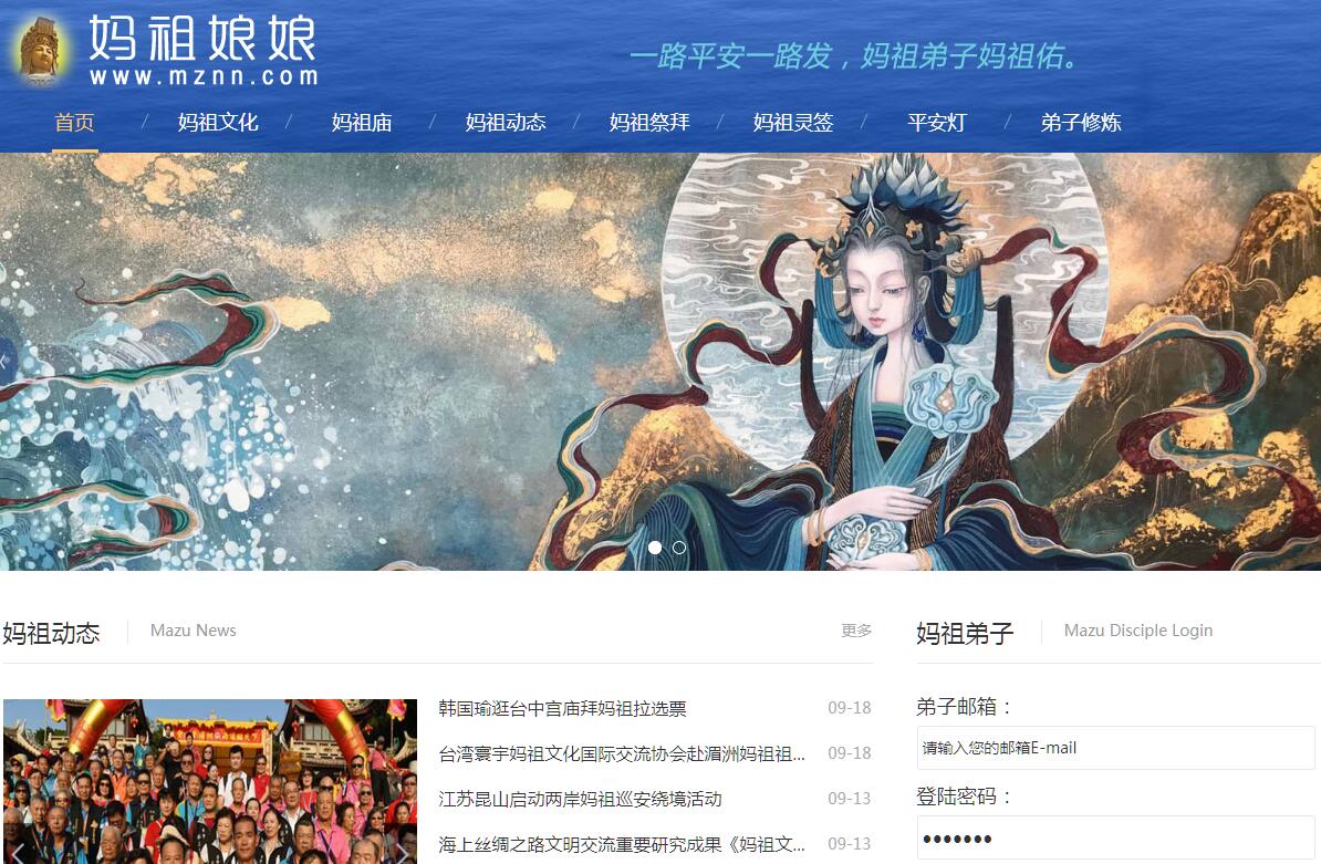 | 網站簡介: 媽祖娘娘網是傳播媽祖文化,弘揚媽祖精神的公益弟子網站,以弘揚中華傳統(tǒng)媽祖文化為己任。網站提供全方位的媽祖動態(tài)、媽祖?zhèn)髡f、媽祖廟、媽祖故事、媽祖靈簽、媽祖在線誦經、媽祖在線點平安燈等服務資訊。 |