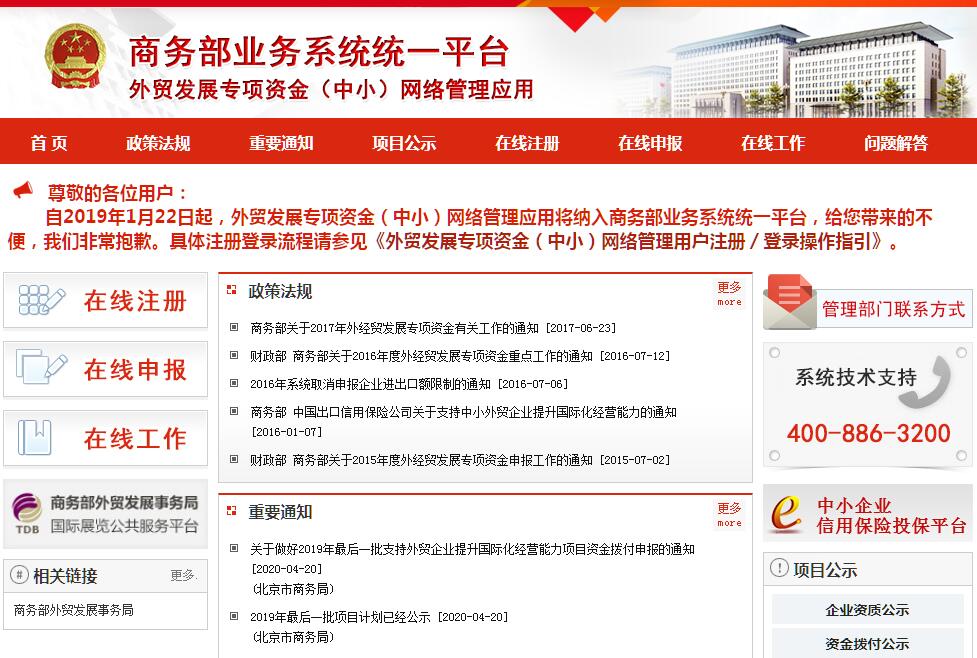 外經(jīng)貿(mào)專項資金網(wǎng)絡(luò)管理系統(tǒng)——支持外貿(mào)中小企業(yè)開拓市場,由中華人民共和國商務(wù)部主辦。