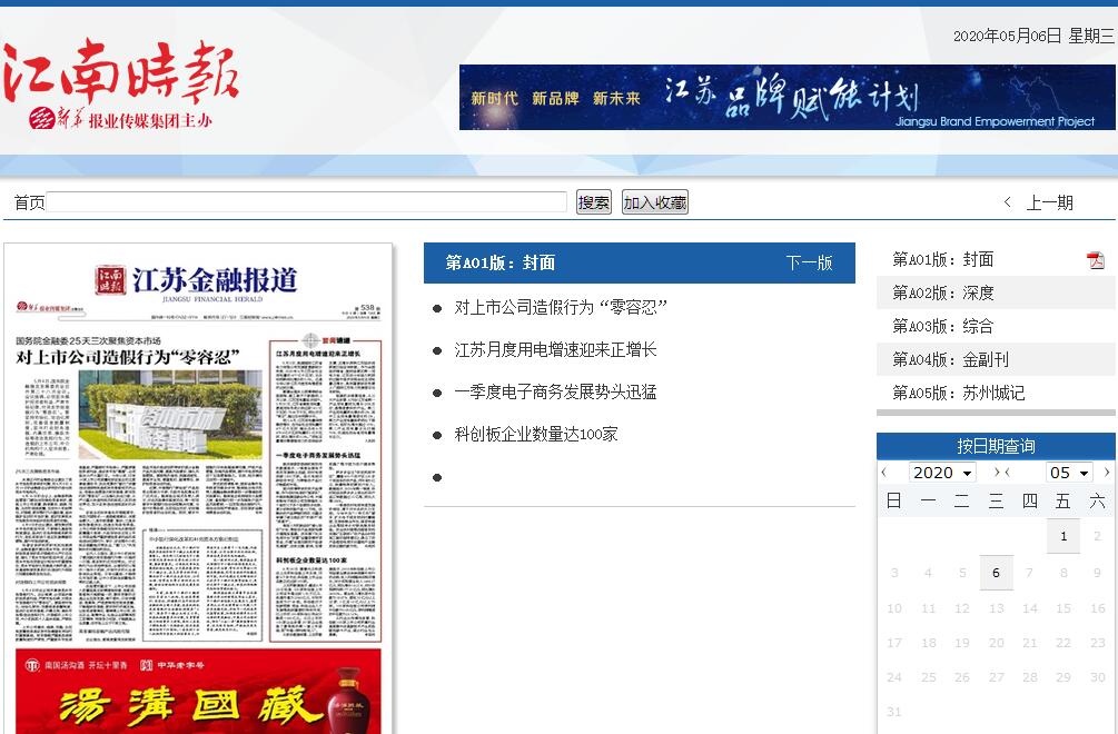 | 網(wǎng)站簡(jiǎn)介: 江南時(shí)報(bào)電子版,江南時(shí)報(bào)多媒體數(shù)字報(bào)?!督蠒r(shí)報(bào)》是新華報(bào)業(yè)傳媒集團(tuán)主管、以金融為特色的綜合類財(cái)經(jīng)報(bào)紙;2018年2月1日,《江南時(shí)報(bào)》轉(zhuǎn)型為《江南時(shí)報(bào)?江蘇金融報(bào)道》,成為江蘇唯一的權(quán)威官方金融專業(yè)報(bào)。潛心以優(yōu)質(zhì)、深度、活潑的內(nèi)容回報(bào)廣大讀者,設(shè)置的《經(jīng)濟(jì)與法》《金副刊》《金理論》等專版??敖先诵小薄敖闲乱暯纭薄耙痪€奮斗者?最美金融人”等特色欄目深受認(rèn)可。 |