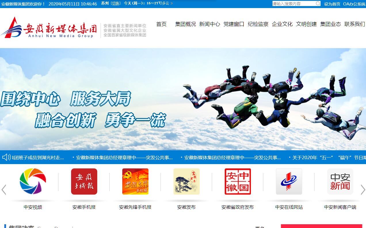 安徽新媒體集團(tuán)于2014年7月1日,經(jīng)省委批準(zhǔn)正式掛牌成立,集團(tuán)隸屬于安徽省委宣傳部管轄,為正廳級國企建制。集團(tuán)系全國首家網(wǎng)絡(luò)媒體集團(tuán)、省直主要新聞單位、省屬重點(diǎn)文化企業(yè),集團(tuán)旗下中安在線網(wǎng)站是安徽最大的網(wǎng)絡(luò)對外宣傳平臺,是我省最早經(jīng)國務(wù)院新聞辦公室批準(zhǔn)的新聞媒體,也是我省三大主流輿論陣地之一(“一報一臺一網(wǎng)”)。集團(tuán)領(lǐng)導(dǎo)班子列入省委管理序列,目前實行的是黨委領(lǐng)導(dǎo)下的總經(jīng)理負(fù)責(zé)制?,F(xiàn)設(shè)有黨委辦(辦公室)、總編室(編委辦)、計劃財務(wù)中心、紀(jì)檢監(jiān)察審計室等4個管理部門,中安在線網(wǎng)站、駐市頻道管理辦公室、融媒體中心、移動媒體中心、政務(wù)新媒體中心等8個業(yè)務(wù)部門,并下轄一級子公司4個,合資公司8家,其中控股2家,參股6家。安徽新媒體集團(tuán)充分整合資源,拓展新的網(wǎng)絡(luò)文化業(yè)態(tài),運(yùn)用高新技術(shù),大力發(fā)展移動互聯(lián)網(wǎng)應(yīng)用、多媒體數(shù)據(jù)庫、網(wǎng)絡(luò)音視頻、公共平臺自媒體建設(shè)、電子出版、電子政務(wù)與電子商務(wù)等新媒體業(yè)務(wù),形成了“兩網(wǎng)(中安在線網(wǎng)站、安徽文明網(wǎng))兩報(安徽手機(jī)報、安徽先鋒手機(jī)報)兩微(安徽發(fā)布微博微信、安徽省政府發(fā)布微博微信)一端(中安新聞客戶端)一頻(中安視頻)”宣傳平臺格局。集團(tuán)還先后承擔(dān)了省政協(xié)網(wǎng)、省政府新聞辦網(wǎng)、省直機(jī)關(guān)黨建網(wǎng)、安徽理論網(wǎng)、安徽非遺網(wǎng)、安徽文化產(chǎn)業(yè)發(fā)展網(wǎng)、安徽戲劇網(wǎng)、安徽作家網(wǎng)、安徽失信被執(zhí)行人曝光臺等網(wǎng)站的建設(shè)運(yùn)維工作,承接省政府辦公廳、省紀(jì)委、省國資委、省財政廳、省水利廳、省國土廳、合肥市政府等60多家黨委、政府部門的雙微運(yùn)營工作;在全省16個地市設(shè)立地方頻道,提供城市生活門戶網(wǎng)站、區(qū)域垂直專業(yè)門戶網(wǎng)站、體育賽事運(yùn)營、廣告視頻制作銷售、互聯(lián)網(wǎng)技術(shù)研發(fā)和應(yīng)用等新型業(yè)態(tài),著力布局全時空傳播體系。安徽新媒體集團(tuán)是省“雙軟企業(yè)”和“省級創(chuàng)新型企業(yè)試點(diǎn)”,旗下全資子公司新媒高科軟件信息技術(shù)有限公司是“國家級高新技術(shù)企業(yè)”。集團(tuán)與中科大、安徽大學(xué)、合肥工業(yè)大學(xué)等高校建立了長期戰(zhàn)略合作關(guān)系,并擁有一支優(yōu)秀的技術(shù)開發(fā)團(tuán)隊,圍繞移動互聯(lián)網(wǎng)軟件矩陣、云開發(fā)服務(wù)平臺、大數(shù)據(jù)分析平臺等方面展開研發(fā)工作。其中,集團(tuán)自主研發(fā)的微信第三方服務(wù)平臺,緊跟微信開放平臺步伐,可全面整合微信高端接口、支付接口,實現(xiàn)多元接口功能,支持海量數(shù)據(jù)并發(fā)能力。集團(tuán)投資千萬元建立信息安全系統(tǒng),可充分滿足政務(wù)信息服務(wù)穩(wěn)定性、連續(xù)性、安全性的需求。 集團(tuán)旗下媒體擁有新聞發(fā)布資質(zhì),并被列入中央網(wǎng)信辦網(wǎng)絡(luò)新聞可轉(zhuǎn)載目錄。其新聞產(chǎn)品屢獲殊榮,其中《安徽人聽報告》在“全國黨媒攜手邁入新時代”十九大融合報道精品100展示活動中獲“最受網(wǎng)友歡迎作品”稱號、《書店不打烊 敞開胸膛溫暖每個人》榮獲全國黨媒優(yōu)秀原創(chuàng)視頻“十佳視覺獎”、網(wǎng)絡(luò)專題《小崗大道》、大型互動手繪長卷《情?淮:淮河莊臺40年簡史》榮獲中國新聞獎三等獎。近年來,在省委宣傳部堅強(qiáng)領(lǐng)導(dǎo)下,集團(tuán)深入貫徹落實習(xí)近平總書記關(guān)于媒體融合發(fā)展一系列重要指示,認(rèn)真貫徹落實中央和省委加快推進(jìn)媒體融合發(fā)展的決策部署,始終堅持一體化發(fā)展方向,積極推動集團(tuán)所屬媒體在內(nèi)容、渠道、平臺、管理等方面深度融合,以“新聞+資訊+互動”為重點(diǎn),“媒體+政務(wù)+服務(wù)”為內(nèi)核,“網(wǎng)絡(luò)技術(shù)+大數(shù)據(jù)+人工智能”為基礎(chǔ),進(jìn)一步完善既有的“策采編審發(fā)”一體化內(nèi)容生產(chǎn)流程和“網(wǎng)端報微視”一體化傳播體系,持續(xù)優(yōu)化資源配置,強(qiáng)化企業(yè)核心競爭力,全力打造新時代下媒體文化企業(yè)新形象。