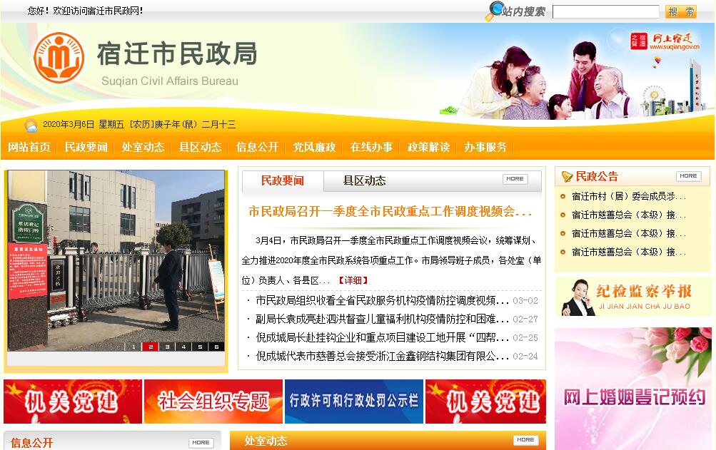 宿遷市民政局主要職責(zé):(一)擬訂全市民政事業(yè)發(fā)展規(guī)劃,起草有關(guān)行政措施,并組織實施和監(jiān)督檢查。指導(dǎo)全市民政工作的改革和發(fā)展。(二)擬訂全市社會團(tuán)體、民辦非企業(yè)單位管理辦法。承擔(dān)依法對社會團(tuán)體、民辦非企業(yè)單位進(jìn)行登記管理和執(zhí)法監(jiān)察責(zé)任。(三)擬訂全市優(yōu)撫配套措施、標(biāo)準(zhǔn)和辦法,承擔(dān)由民政部門管理的傷殘人員傷殘撫恤管理工作,承擔(dān)追認(rèn)革命烈士的審核報批和革命烈士褒揚(yáng)工作。組織和指導(dǎo)擁軍優(yōu)屬工作,承擔(dān)市擁軍優(yōu)屬擁政愛民工作領(lǐng)導(dǎo)小組的有關(guān)具體工作。 (四)擬訂退役士兵、復(fù)員干部、軍隊離退休干部和軍隊無軍籍退休退職職工安置措施及計劃,組織指導(dǎo)各地軍供站、軍人接待轉(zhuǎn)運(yùn)站和移交地方安置的軍隊離退休干部休養(yǎng)所(服務(wù)中心)的服務(wù)管理工作,組織指導(dǎo)全市退役士兵職業(yè)技能培訓(xùn)工作。(五)擬訂全市救災(zāi)工作配套措施,負(fù)責(zé)組織、協(xié)調(diào)救災(zāi)工作,組織自然災(zāi)害救助應(yīng)急體系建設(shè),負(fù)責(zé)組織核查并統(tǒng)一發(fā)布災(zāi)情,管理、分配救災(zāi)款物并監(jiān)督使用,組織、指導(dǎo)救災(zāi)捐贈。承擔(dān)市減災(zāi)委員會辦公室具體工作。(六)擬訂全市社會救助規(guī)劃、標(biāo)準(zhǔn)、辦法,健全城鄉(xiāng)社會救助體系,負(fù)責(zé)城鄉(xiāng)居民最低生活保障、醫(yī)療救助、臨時救助、生活無著人員救助和無固定收入的重度殘疾人生活救助工作,指導(dǎo)五保戶社會救濟(jì)工作,組織實施低收入家庭認(rèn)定工作。(七)擬訂全市行政區(qū)劃和行政區(qū)域界線、地名管理辦法,承擔(dān)行政區(qū)劃、行政區(qū)域界線和地名管理工作。(八)擬訂全市城鄉(xiāng)基層群眾自治組織建設(shè)和社區(qū)建設(shè)配套措施,指導(dǎo)社區(qū)服務(wù)體系建設(shè),提出加強(qiáng)和改進(jìn)城鄉(xiāng)基層政權(quán)建設(shè)的建議,推動基層民主政治建設(shè)。(九)擬訂全市社會福利事業(yè)發(fā)展規(guī)劃、社會福利機(jī)構(gòu)管理辦法和社會福利企業(yè)扶持措施,擬訂促進(jìn)慈善事業(yè)發(fā)展的辦法,組織、指導(dǎo)社會捐助工作,指導(dǎo)老年人、孤兒和殘疾人等特殊群體權(quán)益保障工作。(十)擬訂全市婚姻管理、殯葬管理、兒童收養(yǎng)和城市生活無著的流浪乞討人員救助工作措施,推進(jìn)婚俗和殯葬改革,指導(dǎo)婚姻、殯葬、收養(yǎng)、救助服務(wù)機(jī)構(gòu)管理工作。(十一)擬訂全市福利彩票發(fā)行工作配套措施和實施辦法,組織指導(dǎo)全市福利彩票發(fā)行管理工作,管理市級福利彩票公益金。(十二)會同市有關(guān)部門按規(guī)定擬訂社會工作發(fā)展規(guī)劃和職業(yè)規(guī)范,推進(jìn)社會工作人才隊伍建設(shè)和相關(guān)志愿者隊伍建設(shè)。(十三)指導(dǎo)縣(區(qū))民政系統(tǒng)財務(wù)工作,監(jiān)督民政事業(yè)費(fèi)的使用管理。受理來信來訪,指導(dǎo)縣(區(qū))民政系統(tǒng)信訪工作。(十四)擬訂全市老齡工作配套措施并組織實施,承擔(dān)市老齡工作委員會的具體工作。(十五)承辦市政府交辦的其他事項。