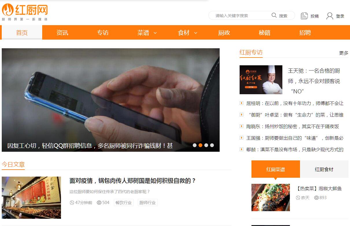 | 網(wǎng)站簡介: 紅廚網(wǎng)是廣東紅餐文化傳播有限公司旗下網(wǎng)站,與紅餐網(wǎng)同屬紅餐傳媒旗下。紅廚網(wǎng)專注服務(wù)廚師群體,自2007年上線以來,其公眾微信號至今吸引了超45萬餐飲人共同關(guān)注,發(fā)展出《紅廚紅菜》、《紅廚菜譜》、《紅廚食材》、《紅廚秘籍》等專業(yè)欄目,影響力位居全國廚師界新媒體之首。作為廚師界第一新媒體網(wǎng)站平臺,紅廚網(wǎng)將不斷整合優(yōu)勢資源,旨在為廚師群體打造一個一體化的門戶網(wǎng)站,以滿足廚師群體的知識需求。 |