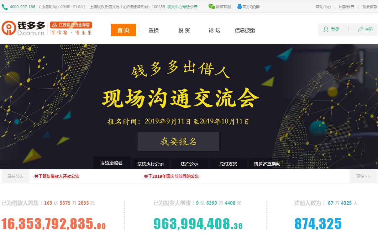 上海旭勝金融信息服務(wù)股份有限公司(簡(jiǎn)稱:旭勝金融,股權(quán)代碼:100355),成立于2013年8月23日,公司旗下品牌——錢多多(D.com.cn)于2013年10月8日正式上線,是一家國(guó)內(nèi)專業(yè)提供融資需求撮合業(yè)務(wù)的互聯(lián)網(wǎng)金融企業(yè)。受多家上市客戶企業(yè)的共同舉薦,承上海股權(quán)托管交易中心的信任,于2014年12月在上海股權(quán)托管交易中心E板掛牌。注冊(cè)資金1.1億元,實(shí)繳資金1.1億元,現(xiàn)有員工百余人,總部位于上海浦東新區(qū)自由貿(mào)易區(qū),占地面積約3千平米。公司集線下融資業(yè)務(wù)于一體,為中小企業(yè)、金融機(jī)構(gòu)以及個(gè)人提供專業(yè)、安全、穩(wěn)健的金融服務(wù)。公司在確?,F(xiàn)有業(yè)務(wù)穩(wěn)定發(fā)展的基礎(chǔ)上,不斷完善運(yùn)營(yíng)模式,積累先進(jìn)的管理經(jīng)驗(yàn),整合優(yōu)質(zhì)的行業(yè)資源,加大互聯(lián)網(wǎng)技術(shù)開發(fā)與應(yīng)用,強(qiáng)化品牌知名度與影響力建設(shè),力求打造成集多元化、標(biāo)準(zhǔn)化、信息化為一體的綜合性金融服務(wù)平臺(tái)。錢多多自成立以來(lái)一直保持著出色成績(jī)。這不僅得益于平臺(tái)成熟的運(yùn)營(yíng)模式,更展現(xiàn)了精益求精的風(fēng)控體系。為搭建安全、有效的風(fēng)控模型,公司高薪聘請(qǐng)了多名擁有10余年金融風(fēng)控從業(yè)經(jīng)驗(yàn)的審核專家,建立了一套獨(dú)具特色、行業(yè)領(lǐng)先的風(fēng)控體系,通過這一無(wú)法復(fù)制的核心競(jìng)爭(zhēng)力,確保了投資人的資金安全。錢多多將在今后正規(guī)運(yùn)營(yíng)過程中,一方面通過對(duì)用戶信息的數(shù)據(jù)歸集與分析,進(jìn)一步確定自身平臺(tái)的市場(chǎng)定位,抓住與公司自身業(yè)務(wù)模式相契合的客戶群體并進(jìn)行深耕細(xì)作,在符合相關(guān)法規(guī)前提下適時(shí)開發(fā)新型借貸服務(wù)模式或產(chǎn)品,提高平臺(tái)業(yè)務(wù)水平與服務(wù)質(zhì)量,另一方面在保證與第三方機(jī)構(gòu)緊密合作的前提下,根據(jù)業(yè)務(wù)發(fā)展實(shí)際情況對(duì)業(yè)務(wù)進(jìn)行拓展,進(jìn)一步提高平臺(tái)在整個(gè)網(wǎng)貸行業(yè)的競(jìng)爭(zhēng)力。錢多多是上海旭勝金融旗下P2P有抵押高收益的在線借貸平臺(tái),匯集全國(guó)各地優(yōu)質(zhì)抵押客戶,為個(gè)人和機(jī)構(gòu)投資者提供無(wú)風(fēng)險(xiǎn)高收益的在線投資理財(cái)服務(wù)。