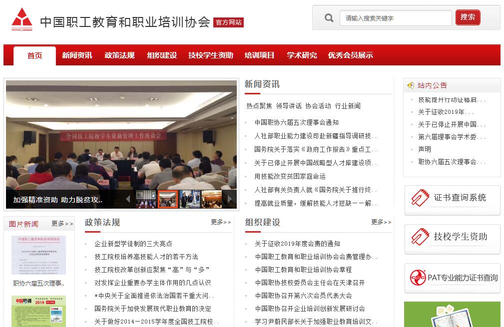 中國職工教育和職業(yè)培訓協(xié)會(簡稱中國職協(xié)),是具有法人資格的全國性社團,由全國各級各類企業(yè)、事業(yè)及行政單位從事職工教育、職業(yè)培訓、職業(yè)技能鑒定工作的部門或個人自愿結(jié)合組成,是非營利性社會團體,是聯(lián)合各部門、各行業(yè)、各地區(qū)在確定的工作領(lǐng)域配合政府進行具體工作的全國性專業(yè)法人團體。中國職協(xié)受人力資源和社會保障部、民政部的業(yè)務指導和監(jiān)督管理。中國職協(xié)的宗旨,是為促進我國職工教育、職業(yè)培訓和職業(yè)技能鑒定事業(yè)的發(fā)展,為全面提高勞動者的素質(zhì),培養(yǎng)有理想、有道德、有文化、有紀律的勞動者服務。中國職協(xié)的任務和主要業(yè)務是,組織、推動和開展具有中國特色的適應社會主義市場經(jīng)濟需要的職工教育、職業(yè)培訓、職業(yè)技能鑒定領(lǐng)域的理論學術(shù)研究,總結(jié)、交流、推廣先進的工作經(jīng)驗和研究成果,為政府部門的決策提供參考依據(jù)和建議;參與國家有關(guān)法律、法規(guī)和政策的研究制定;開展職工教育、職業(yè)培訓、職業(yè)技能鑒定領(lǐng)域的業(yè)務咨詢、業(yè)務培訓;開展與國外有關(guān)組織、部門和人士的交流與合作,開展國外培訓;指導、協(xié)調(diào)各分會、專業(yè)委員會及會員單位開展相關(guān)活動;編輯出版會刊《中國培訓》及有關(guān)書刊。中國職協(xié)通過以上的業(yè)務活動,實現(xiàn)自己的宗旨,發(fā)揮行政部門之間相關(guān)業(yè)務溝通的橋梁作用,發(fā)揮政府部門同基層與企業(yè)之間溝通的橋梁作用。