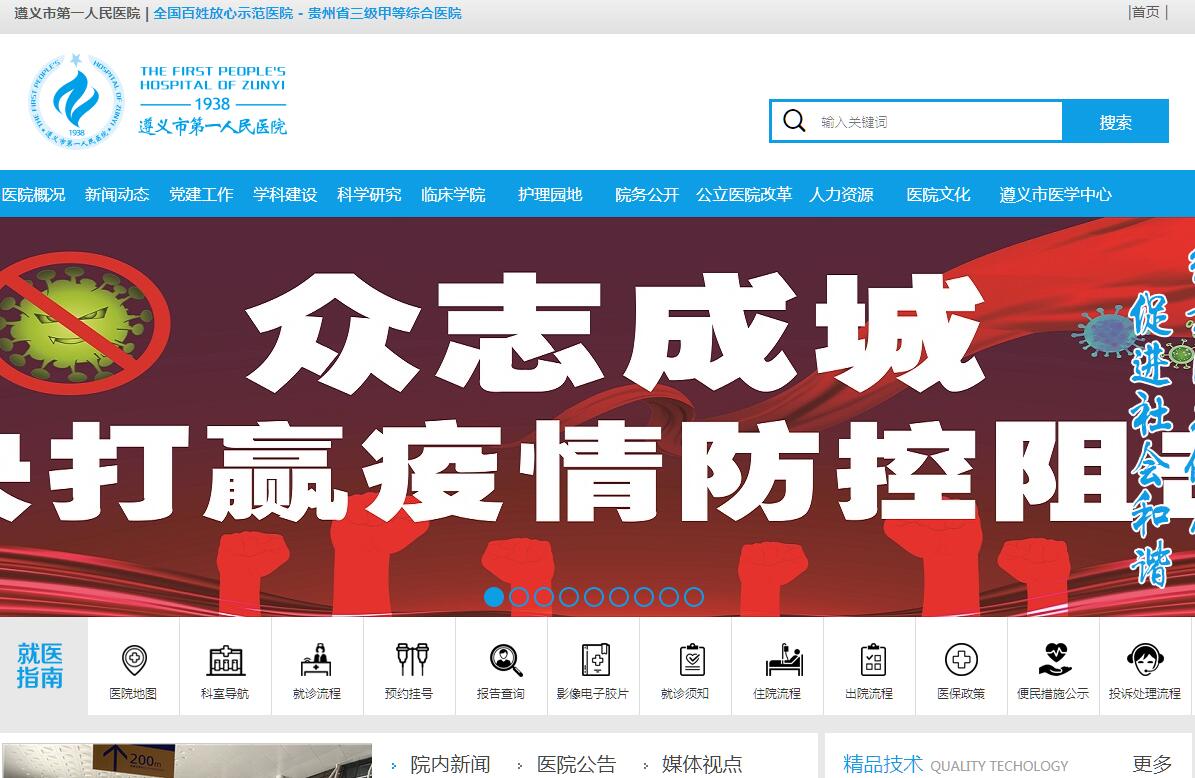 遵義市第一人民醫(yī)院始建于1938年,原名遵義地區(qū)醫(yī)院,1998年遵義撤地設(shè)市后更名為遵義醫(yī)院,2003年成為遵義醫(yī)科大學(xué)第三附屬醫(yī)院,2011年更名為“遵義市第一人民醫(yī)院”?,F(xiàn)為貴州省三級(jí)甲等綜合醫(yī)院,先后榮獲全國(guó)文明單位、全國(guó)百姓放心百佳示范醫(yī)院、全國(guó)醫(yī)藥衛(wèi)生系統(tǒng)先進(jìn)集體、全國(guó)衛(wèi)生系統(tǒng)文化建設(shè)先進(jìn)單位、國(guó)家醫(yī)改試點(diǎn)聯(lián)系城市全國(guó)首批改革試點(diǎn)醫(yī)院、國(guó)家愛嬰醫(yī)院、全國(guó)綜合醫(yī)院中醫(yī)藥工作示范醫(yī)院、全國(guó)改善服務(wù)創(chuàng)新醫(yī)院、全國(guó)三好一滿意百佳示范醫(yī)院、全國(guó)優(yōu)質(zhì)護(hù)理表現(xiàn)突出的先進(jìn)集體、國(guó)家節(jié)約型公共機(jī)構(gòu)示范單位、全國(guó)醫(yī)院后勤管理創(chuàng)新先進(jìn)單位、全國(guó)平安醫(yī)院建設(shè)先進(jìn)醫(yī)院、全國(guó)公立醫(yī)院改革創(chuàng)新先進(jìn)集體、國(guó)家住院醫(yī)師規(guī)范化培訓(xùn)基地、國(guó)家臨床藥物試驗(yàn)基地、國(guó)家醫(yī)師資格考試實(shí)踐技能考試基地、貴州省臨床路徑管理培訓(xùn)基地、貴州省醫(yī)院信息化建設(shè)培訓(xùn)基地、貴州省新生兒窒息復(fù)蘇培訓(xùn)基地。醫(yī)院建筑面積24.19萬(wàn)平方米,編制床位2500張,臨床學(xué)科45個(gè)、醫(yī)技學(xué)科15個(gè)。在職職工2973人(高級(jí)職稱416人,中級(jí)職稱752人,二級(jí)教授1人、三級(jí)教授5人、在職在讀博士65人(含博士后2人),在職在讀碩士382人,候鳥型人才3人); 每年接收實(shí)習(xí)生1000余人,近三年招收規(guī)培生407人、研究生85人,每年承擔(dān)遵義醫(yī)科大學(xué)兩個(gè)班本科生臨床理論課教學(xué)。近三年共獲得國(guó)家然科學(xué)基金資助項(xiàng)目12項(xiàng),省市科技創(chuàng)新人才團(tuán)隊(duì)11個(gè)。醫(yī)院擁有高端雙源CT、SPECT/CT、3.0T核磁共振儀、IGRT直線加速器、Illumina高通量測(cè)序儀、乳腺鉬靶、DYNA-CT DSA數(shù)字減影機(jī),雙能量X線骨密度檢測(cè)儀、全自動(dòng)生化分析檢測(cè)系統(tǒng),大孔徑CT、模擬定位機(jī)、全飛秒激光、高強(qiáng)度聚焦超聲、心臟電生理三維標(biāo)測(cè)系統(tǒng)、分包藥機(jī)、中型物流、3D解剖模擬系統(tǒng)、熒光定量PCR、體外循環(huán)、ECMO等先進(jìn)醫(yī)療設(shè)備;配備有全省先進(jìn)的靜配中心、放療中心、介入中心、雜交手術(shù)室、醫(yī)學(xué)檢驗(yàn)中心、影像中心、消毒供應(yīng)中心、病理中心、內(nèi)鏡中心、血透中心、中心實(shí)驗(yàn)室、核醫(yī)學(xué)科、遠(yuǎn)程會(huì)診中心、120緊急醫(yī)療救援指揮調(diào)度中心、空中醫(yī)療救援基地等平臺(tái);近年成功開展升主動(dòng)脈加主動(dòng)脈瓣置換術(shù)、心臟三支血管搭橋加雙瓣置換術(shù)、惡性腫瘤三維適型調(diào)強(qiáng)放射治療、內(nèi)鏡下粘膜剝離術(shù)、先天性心臟病介入封堵、內(nèi)鏡下經(jīng)縱隔針吸活檢術(shù)、復(fù)雜心律失常射頻消融術(shù)、單孔胸腹腔鏡手術(shù)、經(jīng)內(nèi)鏡逆行胰膽管介入術(shù)、胰十二指腸切除術(shù)、(腔鏡下)惡性腫瘤根治術(shù)、保留生育功能的宮腔鏡手術(shù)、神經(jīng)介入技術(shù)、顱內(nèi)腫瘤手術(shù)、斷指斷肢再植術(shù)、髖膝關(guān)節(jié)置換術(shù)、經(jīng)皮全脊柱內(nèi)鏡下脊柱疾病手術(shù)治療、高位頸椎人工間盤置換術(shù)、兒童腔鏡手術(shù)、脊柱側(cè)彎矯正術(shù)、眼底黃斑區(qū)手術(shù)、(小兒)連續(xù)性腎臟替代治療、腔道大血管支架植入、心臟停跳或不停跳冠脈搭橋、人工血管植入、經(jīng)皮心臟瓣膜置換術(shù)等高新精品。2015年至2018年共獲得國(guó)家然科學(xué)基金資助項(xiàng)目13項(xiàng),省市科技創(chuàng)新人才團(tuán)隊(duì)10個(gè)。目前是遵義市集醫(yī)、教、研、防、急救、康復(fù)為一體的三級(jí)甲等綜合醫(yī)院。