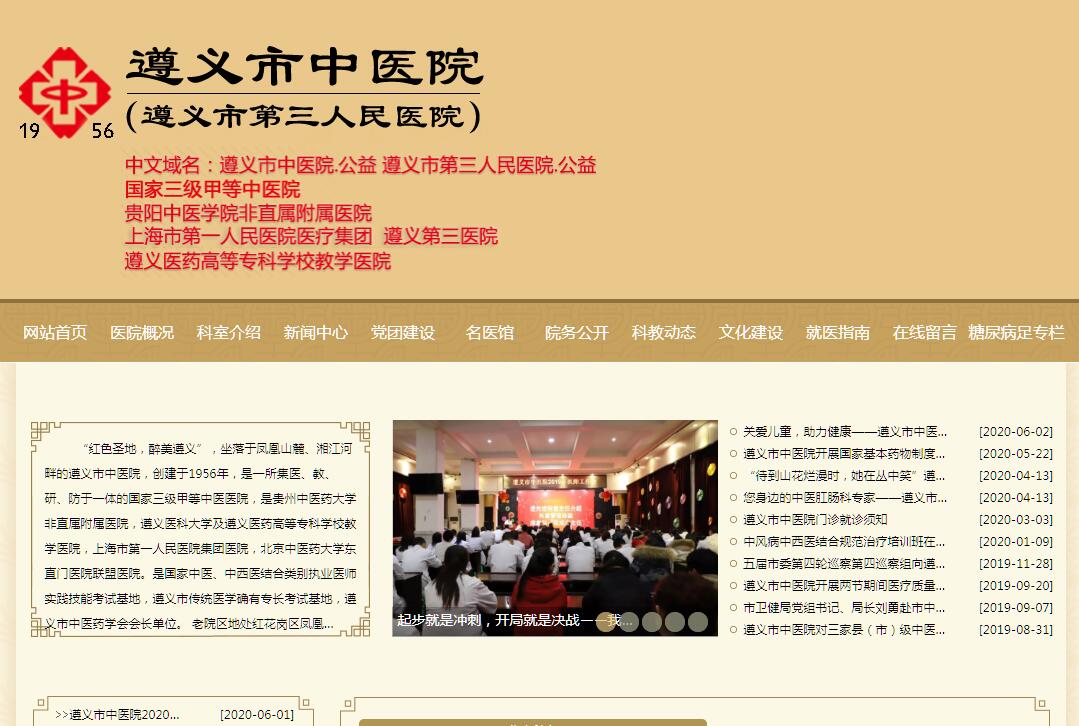 紅色圣地,醉美遵義”,坐落于鳳凰山麓、湘江河畔的遵義市中醫(yī)院,創(chuàng)建于1956年,是一所集醫(yī)、教、研、防于一體的國家三級甲等中醫(yī)醫(yī)院,是貴州中醫(yī)藥大學非直屬附屬醫(yī)院,遵義醫(yī)科大學及遵義醫(yī)藥高等??茖W校教學醫(yī)院,上海市第一人民醫(yī)院集團醫(yī)院,北京中醫(yī)藥大學東直門醫(yī)院聯(lián)盟醫(yī)院。是國家中醫(yī)、中西醫(yī)結(jié)合類別執(zhí)業(yè)醫(yī)師實踐技能考試基地,遵義市傳統(tǒng)醫(yī)學確有專長考試基地,遵義市中醫(yī)藥學會會長單位。老院區(qū)地處紅花崗區(qū)鳳凰南路8號,編制床位600張,開放床位632張。現(xiàn)有職工830余人,其中副高以上職稱64人,學科帶頭人18人,博士3人,碩士研究生60余人,省市級名老中醫(yī)28人。醫(yī)院堅持“中醫(yī)為主,中西醫(yī)并重”發(fā)展模式,充分發(fā)揮祖國醫(yī)學特色優(yōu)勢。醫(yī)院擁有41個行政臨床醫(yī)技科室;擁有有遵義市老年病臨床醫(yī)學中心、遵義市神經(jīng)內(nèi)科(腦?。┡R床醫(yī)學中心、遵義市糖尿病足工作室;腦病科為省級重點學科;腫瘤科、肺病科、脾胃病科、骨傷科、推拿科、內(nèi)分泌病科、婦產(chǎn)科為省級重點建設(shè)???。擁有包括64排CT、磁共振、DR、數(shù)字減影血管造影系統(tǒng)(DSA)、腹腔鏡、鈥激光、彩超、全數(shù)字胃腸鏡、微波深部腫瘤治療儀、體外震波碎石機、全景口腔機等大型醫(yī)療儀器。醫(yī)療設(shè)備先進,內(nèi)外婦兒科室較為齊全。醫(yī)院擁有 “消栓通絡(luò)膠囊”、“金黃散”等10多個院內(nèi)制劑,中醫(yī)特色明顯,療效顯著,深受患者青睞。具備了較強的中西醫(yī)綜合診治能力,滿足群眾就醫(yī)需求。新蒲新院位于新蒲新區(qū)東聯(lián)二號線與縱二路交叉口,占地121畝,編制床位800張,一期建筑面積12.3萬平方米,總投資13億元,于2019年投入使用,新老院區(qū)實行“一院兩區(qū)”同質(zhì)化運營模式。面對新的起點和機遇,醫(yī)院秉承“尊崇國醫(yī),義行仁術(shù);德高術(shù)精,止于至善”的院訓(xùn)精神,以“弘揚中醫(yī)特色,打造服務(wù)精品”為目標,堅持醫(yī)院公益性,走內(nèi)涵發(fā)展、質(zhì)量發(fā)展、特色發(fā)展道路,全面推進人才立院、科技強院、特色興院、依法治院的發(fā)展戰(zhàn)略,為努力建設(shè)中醫(yī)特色突出,中西醫(yī)結(jié)合并重,集醫(yī)療、教學、科研、預(yù)防、保健、康養(yǎng)等中醫(yī)藥綜合服務(wù)能力遵義第一、全省一流、西南知名,具有廣泛影響力的一所群眾信賴、同行尊重、政府滿意、員工自豪的三級甲等中醫(yī)醫(yī)院而努力奮斗!