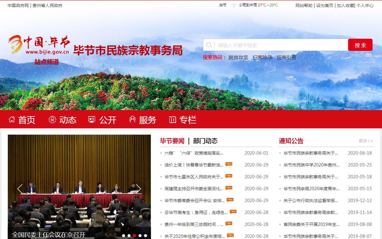 畢節(jié)市民族宗教事務(wù)局主要職責:一、組織開展民族理論、民族政策和民族工作重大問題的調(diào)查研究,提出有關(guān)民族工作的政策建議。二、負責協(xié)調(diào)推動有關(guān)部門履行民族工作的相關(guān)職責;指導(dǎo)全市民族工作,促進民族政策在經(jīng)濟發(fā)展和社會事業(yè)有關(guān)領(lǐng)域的實施、銜接。三、參與起草有關(guān)民族自治地方的政策并督促檢查落實情況,保障少數(shù)民族合法權(quán)益;協(xié)調(diào)、指導(dǎo)民族區(qū)域自治法的貫徹落實,監(jiān)督檢查《城市民族工作條例》、《民族鄉(xiāng)行政工作條例》的貫徹實施。四、提出協(xié)調(diào)民族關(guān)系的工作建議,協(xié)調(diào)處理民族關(guān)系中的重大事項;參與協(xié)調(diào)民族自治地方社會穩(wěn)定工作,促進各民族共同團結(jié)奮斗、共同繁榮發(fā)展。五、擬訂少數(shù)民族事業(yè)專項規(guī)劃并監(jiān)督檢查實施,參與擬訂少數(shù)民族和民族自治地方經(jīng)濟社會相關(guān)領(lǐng)域的發(fā)展規(guī)劃,促進建立和完善少數(shù)民族事業(yè)發(fā)展綜合評價監(jiān)測體系,推進民族事務(wù)服務(wù)體系和民族事務(wù)管理信息化建設(shè)。六、研究少數(shù)民族和民族自治地方經(jīng)濟發(fā)展、社會事業(yè)方面的問題并提出政策建議,參與協(xié)調(diào)民族自治地方科技發(fā)展和經(jīng)濟技術(shù)合作等有關(guān)工作。七、組織指導(dǎo)民族政策、民族法律法規(guī)和民族基本知識的宣傳教育工作,承辦省人民政府和畢節(jié)市人民政府民族團結(jié)進步表彰活動相關(guān)事宜,支持、指導(dǎo)民族自治地方重大慶典活動。八、管理少數(shù)民族語言文字工作,指導(dǎo)少數(shù)民族語言文字的翻譯、出版和民族古籍的搜集、整理、出版工作。九、參與擬訂少數(shù)民族人才隊伍建設(shè)規(guī)劃,聯(lián)系少數(shù)民族干部,協(xié)助有關(guān)部門做好少數(shù)民族干部的培養(yǎng)、教育和使用工作。十、調(diào)查研究宗教現(xiàn)狀,負責市內(nèi)宗教動態(tài)和信息匯總、分析,提出處理宗教領(lǐng)域問題的政策建議。十一、擬訂貫徹宗教事務(wù)工作法律法規(guī)的實施意見并組織實施;負責宗教法律法規(guī)和政策執(zhí)行的督促檢查及宣傳工作。十二、依法履行宗教事務(wù)管理職責,保護公民宗教信仰自由和正常的宗教活動,維護宗教界的合法權(quán)益,促進宗教關(guān)系和諧。十三、處理宗教事務(wù)的重大事件,防范利用宗教進行的非法、違法活動,抵御境外利用宗教進行的滲透活動,指導(dǎo)縣(區(qū))政府民族宗教事務(wù)工作部門依法履行管理職能。十四、指導(dǎo)宗教團體依法依章開展活動,支持宗教團體加強自身建設(shè),推動宗教團體在宗教界開展愛國主義、愛社會主義、擁護祖國統(tǒng)一和維護民族團結(jié)的自我教育;負責辦理宗教團體需由政府解決或協(xié)調(diào)的相關(guān)事務(wù)。十五、負責宗教工作隊伍和相關(guān)人員的培訓(xùn)工作。十六、負責宗教方面的外事歸口管理工作,組織、指導(dǎo)有關(guān)部門和宗教界對外以及對港澳臺的宗教交往活動,參與涉及宗教的對外宣傳工作。十七、承擔宗教事務(wù)行政執(zhí)法監(jiān)管工作。十八、結(jié)合部門職責,做好扶貧開發(fā)工作,負責本部門、本行業(yè)領(lǐng)域的安全生產(chǎn)和消防安全工作;按規(guī)定做好大數(shù)據(jù)發(fā)展應(yīng)用和政務(wù)數(shù)據(jù)資源管理相關(guān)工作,依法促進部門政務(wù)數(shù)據(jù)資源規(guī)范管理、共享和開放。十九、承辦市委、市人民政府和上級業(yè)務(wù)部門交辦的其他工作。