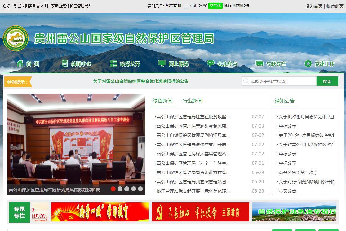 貴州雷公山國家級自然保護區(qū)(以下簡稱保護區(qū))位于貴州省黔東南東州,于1982年6月經(jīng)貴州省人民政府批準(zhǔn)建立,2001年6月經(jīng)國務(wù)院批準(zhǔn)晉升為國家級自然保護區(qū), 2007年11月加入中國人與生物圈保護區(qū)網(wǎng)絡(luò),2019年8月經(jīng)國家林業(yè)和草原局批準(zhǔn)授予“自然保護地國家創(chuàng)新聯(lián)盟成員單位”。保護區(qū)地跨雷山、臺江、劍河、榕江4縣,涉及10個鄉(xiāng)(鎮(zhèn))42個行政村,8905戶3.0萬人,其中居住在區(qū)內(nèi)的有25個村,2683戶,1.2萬余人,是黔東南境內(nèi)唯一的國家級自然保護區(qū)。地理位置東經(jīng)108°5'—108°24',北緯26°15'—26°32'。最高海拔2178.8米,最低海拔650米,東西橫延約15公里,南北縱深約30公里??偯娣e47300公頃,其中,核心區(qū)面積16818公頃,緩沖區(qū)面積10314公頃,實驗區(qū)面積20168公頃。有林地面積43586公頃,森林覆蓋率92.34%,活立木總蓄積416萬立方米。國有土地9048.7公頃,占19.1%,集體土地38251.3公頃,占80.9%。是以保護臺灣杉(禿杉)等珍稀生物為主的自然資源(包括水資源、旅游資源)、具有綜合經(jīng)營效益的中亞熱帶山地森林生態(tài)系統(tǒng)類型的自然保護區(qū)。保護區(qū)地處長江水系和珠江水系的分水嶺地帶,是構(gòu)成清水江和都柳江主要支流的發(fā)源地,屬于中亞熱帶季風(fēng)山地濕潤氣候區(qū),具有冬無嚴(yán)寒,夏無酷暑,溫暖濕潤,雨量充沛的氣候特點。全年太陽總輻射值為3642.5~3726.3兆焦耳/平方米。溫度隨海拔升高而降低,山麓年平均溫度14~16℃,山腰11.7℃,山頂9.2℃。年降雨量一般在1300~1600毫米之間。水資源極為豐富,區(qū)內(nèi)水資源總量為183731萬立方米/年,其中地下水資源為37382萬立方米/年。不僅對黔東南的水源涵養(yǎng)、水土保持、環(huán)境改善及生態(tài)平衡的維持起著關(guān)鍵作用,而且對清水江、都柳江兩江流域流量的補給起著重要的作用,也是長江水系和珠江水系水資源的重要維持者,具有重要的生態(tài)維護功能。保護區(qū)地帶性植被屬中亞熱帶東部偏濕性常綠闊葉林,植被垂直分布明顯。海拔1350米以下是地帶性常綠闊葉林;1350~1850米為多脈水青岡、水青岡、亮葉水青岡為主的高山常綠、落葉闊葉混交林;1850~2100米為山頂苔蘚矮林;海拔2100米以上為杜鵑箭竹灌叢。保護區(qū)內(nèi)生物資源豐富,已經(jīng)鑒定的各類生物種類5158種,其中:動物2300種,高等植物2595種,大型真菌263種。列入國家Ⅰ、Ⅱ級保護的珍稀動植物共有63種,其中:植物有紅豆杉、南方紅豆杉、鐘萼木、異形玉葉金花、臺灣杉、水青樹、馬尾樹等25種;動物有云豹、金錢豹、林麝、白頸長尾雉、鴛鴦、紅腹錦雞、大鯢、黑熊、穿山甲、獼猴、藏酋猴、大靈貓、鳳頭鷹、柳葉雞(勺雞)、褐耳鷹等38種。植物方面,省級重點保護的有21種,列為《瀕危野生動植物種國際貿(mào)易公約(附錄Ⅱ)》74種,貴州新記錄2屬34種,雷公山特有種11種。動物方面,貴州新記錄有203種,中國新記錄有20種,有3個新屬,170個新種,雷公山特有種166種。2008年以來,經(jīng)科研監(jiān)測累計發(fā)現(xiàn)植物新種4種,動植物新記錄69種。保護區(qū)主要保護物種臺灣杉,是第三紀(jì)古熱帶植物區(qū)系孑遺種。是國內(nèi)僅有的3個天然禿杉群落中分布面積最大、數(shù)量最多、保存最完整、原生性最強的區(qū)域,是重要的天然臺灣杉林研究基地。雷公山國家級自然保護區(qū)管理局是原貴州省林業(yè)廳委托黔東南州人民政府管理的州直屬正縣級事業(yè)單位。內(nèi)設(shè)辦公室、資源林政、科技、發(fā)展規(guī)劃和資金管理、人事勞資、規(guī)劃建設(shè)、質(zhì)量安全、法規(guī)、野生動物救護中心、信息中心、植物檢疫站、共11個科(室、局),下設(shè)雷公山、方祥、西江、桃江、小丹江、交密6個管理站、1個國有林場(轄九十九和雷公山2個工區(qū))、3個資源檢查站(雷公山、小丹江、交密)。人員定編90人?,F(xiàn)有在崗事業(yè)人員67人,退休人員66人。在崗人員中,林業(yè)工程應(yīng)用研究員1人,高級工程師6人,工程師27人,助理工程師17人,專業(yè)技術(shù)人員比例占職工總數(shù)的76.12%。2006年經(jīng)黔東南州委批準(zhǔn),成立中共雷公山自然保護區(qū)管理局黨組,局黨組下設(shè)機關(guān)黨委,有10個基層黨支部71名黨員。 保護區(qū)現(xiàn)有瞭望臺4座,氣象觀測站4座,水文站1座,生態(tài)定位監(jiān)測點2個,生物多樣性監(jiān)測樣帶25公里,監(jiān)測樣地30個。保護區(qū)實行無紙化辦公,建有局網(wǎng)站、公文辦理系統(tǒng),并建成了集森林防火視頻監(jiān)控系統(tǒng)、林區(qū)管理智慧系統(tǒng)、野外巡護系統(tǒng)、生態(tài)教育系統(tǒng)、生態(tài)監(jiān)測平臺、地理信息系統(tǒng)六個系統(tǒng)為一體的雷公山森林資源管理智慧系統(tǒng),不斷推進智慧雷公山建設(shè)。保護區(qū)自成立以來,始終依法加強森林資源管護,嚴(yán)厲打擊破壞森林資源行為,堅決守住“發(fā)展和生態(tài)兩條底線”,構(gòu)建人與自然和諧發(fā)展,在資源保護、林業(yè)執(zhí)法、社區(qū)共管等各項事業(yè)取得長足發(fā)展,科研工作成績斐然。1989年出版了《雷公山自然保護區(qū)科學(xué)考察集》、2007年出版了《雷公山國家級自然保護區(qū)生物多樣性研究》《雷