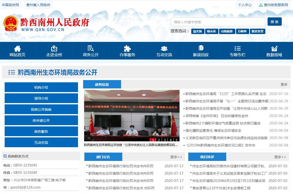 黔西南州生態(tài)環(huán)境局主要職責(zé):(一)全面貫徹落實(shí)生態(tài)環(huán)境基本制度。會同有關(guān)部門擬訂全州生態(tài)環(huán)境政策、規(guī)劃并組織實(shí)施,起草地方性生態(tài)環(huán)境法規(guī)、規(guī)章草案。會同有關(guān)部門編制并監(jiān)督實(shí)施重點(diǎn)區(qū)域、流域、飲用水水源地生態(tài)環(huán)境規(guī)劃和水功能區(qū)劃;貫徹生態(tài)環(huán)境標(biāo)準(zhǔn)、生態(tài)環(huán)境技術(shù)規(guī)劃。(二)負(fù)責(zé)重大生態(tài)環(huán)境問題的統(tǒng)籌協(xié)調(diào)和監(jiān)督管理。牽頭協(xié)調(diào)較大環(huán)境污染事故和生態(tài)破壞事件的調(diào)查處理,指導(dǎo)協(xié)調(diào)縣(市)政府、新區(qū)管委會對較大突發(fā)生態(tài)環(huán)境事件的應(yīng)急、預(yù)警工作,牽頭指導(dǎo)實(shí)施生態(tài)環(huán)境損害賠償制度,協(xié)調(diào)解決有關(guān)跨區(qū)域環(huán)境污染糾紛,統(tǒng)籌協(xié)調(diào)全州重點(diǎn)區(qū)域、流域生態(tài)環(huán)境保護(hù)工作。(三)負(fù)責(zé)監(jiān)督管理全州減排目標(biāo)的落實(shí)。組織制定貫徹各類污染物排放總量控制、排污許可證制度的措施并監(jiān)督實(shí)施,確定大氣、水等納污能力,提出貫徹實(shí)施總量控制的污染物名稱和控制指標(biāo),監(jiān)督檢查各地污染物減排任務(wù)完成情況,實(shí)施生態(tài)環(huán)境保護(hù)目標(biāo)責(zé)任制。(四)負(fù)責(zé)提出生態(tài)環(huán)境領(lǐng)域固定資產(chǎn)投資規(guī)模和方向、州財(cái)政性資金安排的意見,按規(guī)定權(quán)限審批、核準(zhǔn)規(guī)劃內(nèi)和年度計(jì)劃規(guī)模內(nèi)固定資產(chǎn)投資項(xiàng)目,配合有關(guān)部門做好組織實(shí)施和監(jiān)督工作。參與指導(dǎo)推動(dòng)循環(huán)經(jīng)濟(jì)和生態(tài)環(huán)保產(chǎn)業(yè)發(fā)展。(五)負(fù)責(zé)環(huán)境污染防治的監(jiān)督管理。制定貫徹大氣、水、土壤、噪聲、光、惡臭、固體廢物、化學(xué)品、機(jī)動(dòng)車等污染防治管理制度的措施并監(jiān)督實(shí)施。會同有關(guān)部門監(jiān)督管理飲用水源地生態(tài)環(huán)境保護(hù)工作,組織指導(dǎo)城鄉(xiāng)生態(tài)環(huán)境綜合整治工作,監(jiān)督指導(dǎo)農(nóng)面源污染治理工作。監(jiān)督、管理、指導(dǎo)區(qū)域大氣環(huán)境保護(hù)工作,組織實(shí)施區(qū)域大氣污染聯(lián)防聯(lián)控協(xié)作機(jī)制。(六)指導(dǎo)協(xié)調(diào)和監(jiān)督生態(tài)保護(hù)修復(fù)工作。組織編制生態(tài)保護(hù)規(guī)劃,監(jiān)督對生態(tài)環(huán)境有影響的自然資源開發(fā)利用活動(dòng)、重要生態(tài)環(huán)境建設(shè)和生態(tài)破壞恢復(fù)工作。組織制定各類自然保護(hù)地生態(tài)環(huán)境監(jiān)管制度并監(jiān)督執(zhí)法。監(jiān)督野生動(dòng)植物保護(hù)、濕地生態(tài)環(huán)境保護(hù)、荒漠化防治等工作。指導(dǎo)協(xié)調(diào)和監(jiān)督農(nóng)村生態(tài)環(huán)境保護(hù),監(jiān)督生物技術(shù)環(huán)境安全,牽頭生物物種(含遺傳資源)工作,組織協(xié)調(diào)生物多樣性保護(hù)工作,參與生態(tài)保護(hù)補(bǔ)償工作。(七)負(fù)責(zé)核與輻射安全的監(jiān)督管理。擬訂貫徹有關(guān)政策、規(guī)劃、標(biāo)準(zhǔn)的措施,牽頭負(fù)責(zé)核安全工作協(xié)調(diào)機(jī)制有關(guān)工作,參與核事故應(yīng)急處理,負(fù)責(zé)輻射環(huán)境事故應(yīng)急處理工作。監(jiān)督管理核設(shè)施與放射源安全,監(jiān)督管理核設(shè)施、核技術(shù)應(yīng)用、電磁輻射、 伴有放射性礦產(chǎn)資源開發(fā)利用中的污染防治。(八)負(fù)責(zé)生態(tài)環(huán)境準(zhǔn)入的監(jiān)督管理。受州政府委托對重大經(jīng)濟(jì)和技術(shù)政策、發(fā)展規(guī)劃以及重大經(jīng)濟(jì)開發(fā)計(jì)劃進(jìn)行環(huán)境影響評價(jià)。按規(guī)定承擔(dān)重大開發(fā)建設(shè)區(qū)域、規(guī)劃、項(xiàng)目環(huán)境影響評價(jià)相關(guān)工作。擬訂并組織實(shí)施生態(tài)環(huán)境準(zhǔn)入清單。(九)負(fù)責(zé)生態(tài)環(huán)境監(jiān)測工作。制定貫徹生態(tài)環(huán)境監(jiān)測制度和規(guī)范、相關(guān)標(biāo)準(zhǔn)的措施并監(jiān)督實(shí)施。會同有關(guān)部門統(tǒng)一規(guī)劃生態(tài)環(huán)境質(zhì)量監(jiān)測站點(diǎn)設(shè)置,組織開展生態(tài)環(huán)境保護(hù)綜合執(zhí)法監(jiān)測、污染源監(jiān)督性監(jiān)測、溫室氣體減排監(jiān)測和突發(fā)環(huán)境事件應(yīng)急監(jiān)測。組織對生態(tài)環(huán)境質(zhì)量狀況進(jìn)行調(diào)查評價(jià)、預(yù)警預(yù)測,組織承建和管理生態(tài)環(huán)境監(jiān)測網(wǎng)和生態(tài)環(huán)境信息網(wǎng),推動(dòng)生態(tài)環(huán)境大數(shù)據(jù)建設(shè)。實(shí)行生態(tài)環(huán)境質(zhì)量公告制度,統(tǒng)一發(fā)布全州生態(tài)環(huán)境綜合性報(bào)告和重大生態(tài)環(huán)境信息。(十)負(fù)責(zé)應(yīng)對氣候變化工作。組織擬訂貫徹應(yīng)對氣候變化及溫室氣體減排重大戰(zhàn)略、規(guī)劃和政策的措施,綜合協(xié)調(diào)應(yī