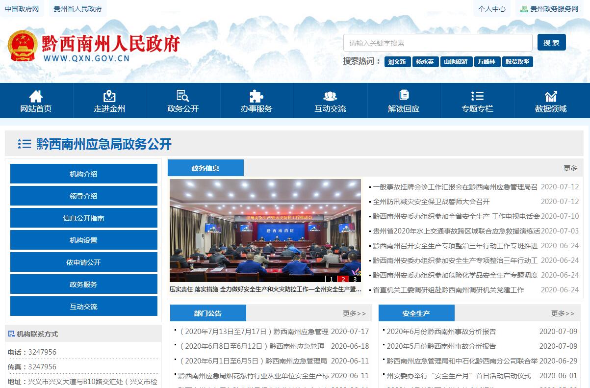 黔西南州應(yīng)急局主要職責:(一)負責全州應(yīng)急管理工作,指導(dǎo)全州各地各部門應(yīng)對安全生產(chǎn)類、自然災(zāi)害類等突發(fā)事件和綜合防災(zāi)減災(zāi)救災(zāi)工作。負責全州安全生產(chǎn)綜合監(jiān)督管理和工礦商貿(mào)行業(yè)安全生產(chǎn)監(jiān)督管理工作(煤礦除外,下同)。(二)擬訂全州應(yīng)急管理、安全生產(chǎn)等政策措施,組織編制全州應(yīng)急體系建設(shè)、安全生產(chǎn)和綜合防災(zāi)減災(zāi)規(guī)劃,起草相關(guān)規(guī)范性文件,組織擬訂相關(guān)規(guī)程和標準并監(jiān)督實施。(三)指導(dǎo)全州應(yīng)急預(yù)案體系建設(shè),建立完善事故災(zāi)難和自然災(zāi)害分級應(yīng)對制度,組織編制黔西南州總體應(yīng)急預(yù)案和安全生產(chǎn)類、自然災(zāi)害類專項預(yù)案并組織實施,綜合協(xié)調(diào)應(yīng)急預(yù)案銜接工作,組織開展預(yù)案演練,推動應(yīng)急避難設(shè)施建設(shè)。(四)按要求牽頭建立與國家和省應(yīng)急管理信息系統(tǒng)相銜接的、全州統(tǒng)一的應(yīng)急管理信息系統(tǒng),負責信息傳輸渠道的規(guī)劃和布局,建立監(jiān)測預(yù)警和災(zāi)情報告制度,健全自然災(zāi)害信息資源獲取和共享機制,依法統(tǒng)一發(fā)布災(zāi)情。(五)組織指導(dǎo)協(xié)調(diào)全州安全生產(chǎn)類、自然災(zāi)害類等突發(fā)事件應(yīng)急救援,承擔州政府應(yīng)對重大災(zāi)害指揮部工作,綜合研判突發(fā)事件發(fā)展態(tài)勢并提出應(yīng)對建議,協(xié)助州委、州政府指定的負責同志組織重大災(zāi)害應(yīng)急處置工作。(六)統(tǒng)一協(xié)調(diào)指揮全州各類應(yīng)急專業(yè)隊伍,建立應(yīng)急協(xié)調(diào)聯(lián)動機制,推進指揮平臺對接,銜接駐州解放軍和武警部隊參與應(yīng)急救援工作。(七)統(tǒng)籌全州應(yīng)急救援力量建設(shè),按規(guī)定負責消防、森林和草原火災(zāi)撲救、抗洪搶險、地震和地質(zhì)災(zāi)害救援、生產(chǎn)安全事故救援等專業(yè)應(yīng)急力量建設(shè),按規(guī)定管理州級綜合性應(yīng)急救援隊伍和專業(yè)救援隊伍,指導(dǎo)州內(nèi)各地和社會應(yīng)急救援力量建設(shè)。(八)按規(guī)定負責全州消防管理工作,組織指導(dǎo)消防監(jiān)督、火災(zāi)預(yù)防、火災(zāi)撲救等工作。(九)指導(dǎo)協(xié)調(diào)森林和草原火災(zāi)、水旱災(zāi)害、地震和地質(zhì)災(zāi)害等防治工作,負責自然災(zāi)害綜合監(jiān)測預(yù)警工作,指導(dǎo)開展自然災(zāi)害綜合風(fēng)險評估工作;承擔州防汛抗旱指揮部、州森林防火指揮部和州抗震救災(zāi)指揮部日常工作。(十)組織協(xié)調(diào)全州災(zāi)害救助工作;組織指導(dǎo)災(zāi)情核查、損失評估、救災(zāi)捐贈工作,協(xié)調(diào)州發(fā)改委按需分配中央、省下?lián)芎椭菁壘葹?zāi)款物;承擔州減災(zāi)委員會日常工作。(十一)依法行使全州安全生產(chǎn)綜合監(jiān)督管理職權(quán)。指導(dǎo)協(xié)調(diào)、監(jiān)督檢查州級有關(guān)部門和州內(nèi)各地安全生產(chǎn)工作,組織開展安全生產(chǎn)巡查、考核工作;承擔州安全生產(chǎn)委員會日常工作。(十二)按照分級、屬地原則,依法監(jiān)督檢查工礦商貿(mào)生產(chǎn)經(jīng)營單位貫徹執(zhí)行安全生產(chǎn)法規(guī)規(guī)章情況及其安全生產(chǎn)條件、設(shè)備(特種設(shè)備除外)、材料、勞動防護用品的安全生產(chǎn)管理工作。依法組織并監(jiān)督實施安全生產(chǎn)準入制度。負責危險化學(xué)品安全監(jiān)督管理綜合工作和危險化學(xué)品登記;負責煙花爆竹安全生產(chǎn)監(jiān)督管理工作。(十三)依法組織指導(dǎo)開展生產(chǎn)安全事故調(diào)查處理,監(jiān)督事故查處和責任追究落實情況;組織開展自然災(zāi)害類突發(fā)事件的調(diào)查評估工作。(十四)擬訂全州應(yīng)急物資儲備和應(yīng)急救援裝備規(guī)劃并組織實施,會同州發(fā)改委等部門建立健全應(yīng)急物資信息平臺和調(diào)撥制度,在救災(zāi)時統(tǒng)一調(diào)度。(十五)負責應(yīng)急管理、安全生產(chǎn)和綜合防災(zāi)減災(zāi)宣傳教育和培訓(xùn)工作,組織指導(dǎo)應(yīng)急管理、安全生產(chǎn)和綜合防災(zāi)減災(zāi)的科學(xué)技術(shù)規(guī)劃研究、推廣應(yīng)用和信息化建設(shè)工作。(十六)根據(jù)州委、州人民政府和省應(yīng)急管理廳的決策部署,開展應(yīng)急管理方面的跨區(qū)域交流合作和應(yīng)急救援。(十七)結(jié)合部門職責,做好相關(guān)工作;推進全州應(yīng)急管理職能轉(zhuǎn)變、簡政放權(quán)、放管結(jié)合、優(yōu)化服務(wù)改革,深化行政審批制度改革工作。(十八)完成州委、州人民政府和省應(yīng)急管理廳交辦的其他任務(wù)。