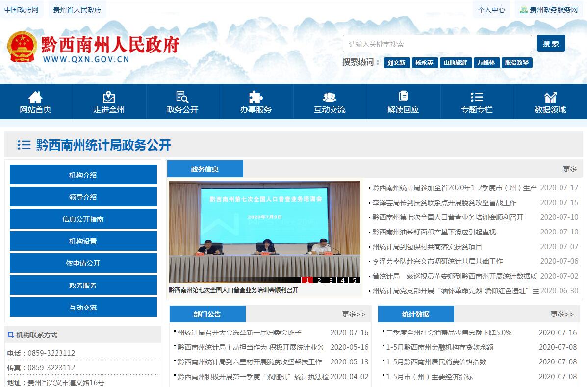 黔西南州統(tǒng)計局主要職責(zé):(一)貫徹執(zhí)行國家、省統(tǒng)計工作的方針、政策、法律、法規(guī)和統(tǒng)計標(biāo)準(zhǔn)、統(tǒng)計方法及統(tǒng)計報表制度,組織指導(dǎo)全州各縣(市)、各部門的統(tǒng)計和國民經(jīng)濟核算工作。(二)搜集、整理、提供全州性的基本統(tǒng)計資料,并對國民經(jīng)濟、社會發(fā)展和科技進(jìn)步情況進(jìn)行統(tǒng)計分析、評估、預(yù)測和監(jiān)督,向州委、州政府及有關(guān)部門提供統(tǒng)計咨詢服務(wù)。(三)統(tǒng)一核算、管理、公布全州基本統(tǒng)計資料,定期發(fā)布全州國民經(jīng)濟和社會發(fā)展情況的統(tǒng)計公報。(四)按照國家統(tǒng)一規(guī)定,組織實施重大的國情國力的各項普查;統(tǒng)一組織協(xié)調(diào)各縣(市)、各部門的社會經(jīng)濟調(diào)查,審查各縣(市)、各部門的統(tǒng)計調(diào)查計劃、調(diào)查方案;管理全州統(tǒng)計報表工作。(五)建立健全和管理全州統(tǒng)計信息自動化系統(tǒng)和統(tǒng)計數(shù)據(jù)庫,協(xié)調(diào)和管理全州范圍內(nèi)的統(tǒng)計數(shù)據(jù)庫網(wǎng)絡(luò)。(六)貫徹執(zhí)行國家和省統(tǒng)計改革方案,結(jié)合我州實際,制定實施辦法,并組織實施。(七)依法協(xié)助管理各縣(市)統(tǒng)計局局長和副局長,協(xié)同有關(guān)部門組織管理全州統(tǒng)計專業(yè)職稱的資格考試工作。(八)組織指導(dǎo)全州統(tǒng)計科學(xué)研究、統(tǒng)計教育、統(tǒng)計干部培訓(xùn)等工作。(九)開展統(tǒng)計工作和統(tǒng)計科學(xué)的交流與合作。(十)承擔(dān)州全面小康建設(shè)工作領(lǐng)導(dǎo)小組辦公室職責(zé)。組織指導(dǎo)全州全面小康創(chuàng)建工作;開展以縣為單位全面小康統(tǒng)計監(jiān)測和全面小康建設(shè)達(dá)標(biāo)縣鞏固提升現(xiàn)代化統(tǒng)計監(jiān)測工作;開展經(jīng)濟強縣相關(guān)業(yè)務(wù)工作。(十一)結(jié)合本部門職責(zé),做好軍民融合、扶貧開發(fā)、“放管服”改革等相關(guān)工作;加大科技投入,提高科技創(chuàng)新能力,為推進(jìn)創(chuàng)新驅(qū)動發(fā)展提供保障;負(fù)責(zé)本部門、本行業(yè)領(lǐng)域的安全生產(chǎn)和消防安全工作;按規(guī)定做好大數(shù)據(jù)發(fā)展應(yīng)用和政務(wù)數(shù)據(jù)資源管理相關(guān)工作,依法促進(jìn)部門政務(wù)數(shù)據(jù)資源規(guī)范管理、共享和開放。(十二)完成州委、州政府和省統(tǒng)計局交辦的其他任務(wù)。