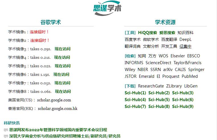 思謀學(xué)術(shù):為科研工作者提供谷歌學(xué)術(shù)和網(wǎng)頁搜索的網(wǎng)站導(dǎo)航,自動檢測和更新可以訪問的谷歌學(xué)術(shù)網(wǎng)址,并提供學(xué)術(shù)論文的Sci-Hub免費(fèi)下載通道。
