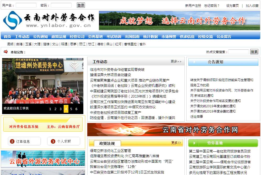 云南對外勞務合作網由云南省商務廳主辦。