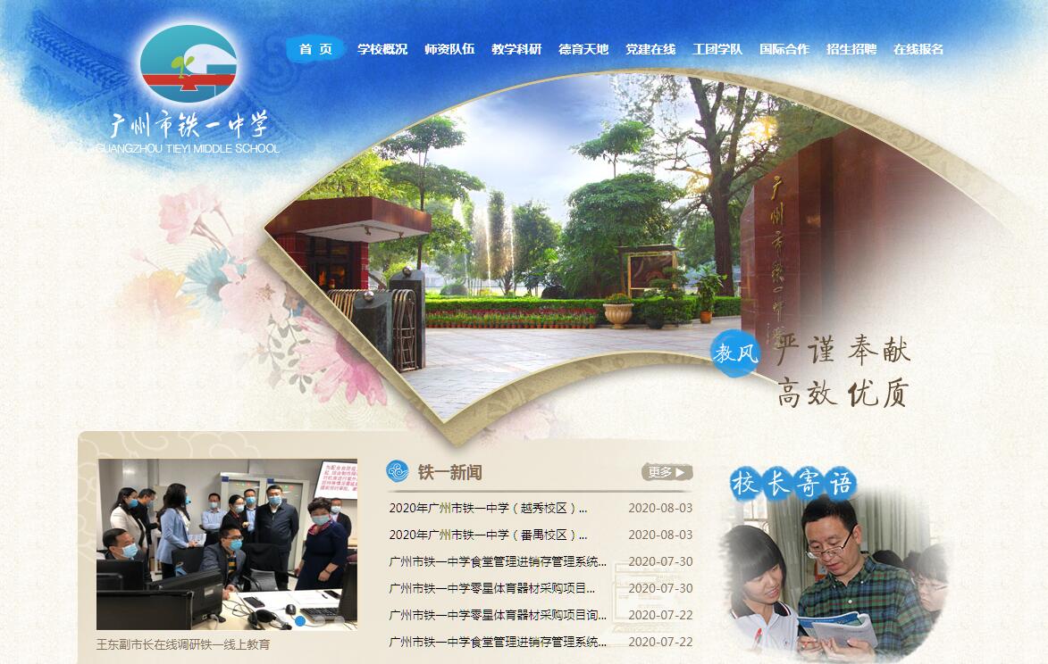 廣州市鐵一中學(xué)創(chuàng)建于1952年,是原鐵道部重點(diǎn)中學(xué),首批廣東省一級(jí)學(xué)校,國家級(jí)示范性普通高中。2018年5月,廣鐵一中教育集團(tuán)正式成立。集團(tuán)旗下現(xiàn)擁有越秀校區(qū)、番禺(亞運(yùn)城)校區(qū)、白云校區(qū)三個(gè)廣州市直屬公辦完全中學(xué),番禺區(qū)廣鐵一中天成中學(xué)、黃埔區(qū)廣鐵一中鐵英小學(xué)以及廣鐵一中外國語幼兒園、小學(xué),廣鐵一中外國語學(xué)校8個(gè)校區(qū),過萬名師生,還有將于2020年開辦的黃埔區(qū)廣鐵一中鐵英中學(xué)、番禺區(qū)廣鐵一中天峰中學(xué)兩個(gè)校區(qū)。教育集團(tuán)內(nèi)成員學(xué)校實(shí)行五“統(tǒng)一”管理:統(tǒng)一辦學(xué)理念、統(tǒng)一育人目標(biāo)、統(tǒng)一管理模式、統(tǒng)一校園文化、統(tǒng)一質(zhì)量監(jiān)控。多年來,鐵一的教育教學(xué)成績一直穩(wěn)居省、市前列。近三年,高考高分優(yōu)先投檔上線率(重本率)均超過80%,本科率100%。在藝術(shù)、體育、科技教育等方面也碩果累累,被譽(yù)為“校風(fēng)優(yōu)良、人文濃郁、學(xué)生青睞、家長信賴”的精品名校。鐵一中學(xué)名師薈萃,有口皆碑。他們淵博的學(xué)識(shí)會(huì)令你折服,他們認(rèn)真的態(tài)度會(huì)讓你動(dòng)容,他們朝氣蓬勃與你相仿,他們和藹可親與你為友。這里藏龍臥虎,星光熠熠。學(xué)校領(lǐng)導(dǎo)班子中有全國優(yōu)秀教師周偉鋒,特級(jí)教師黃連生,以及廣州市優(yōu)秀教育工作者肖宏偉、廣州市名教師工作室主持人陳暾,廣州市骨干教師丁丹。學(xué)?,F(xiàn)有正高級(jí)教師3人,特級(jí)教師5人,現(xiàn)任專職教師353人,其中高級(jí)教師103人,占29%,一級(jí)教師136人,占38%,具有研究生學(xué)歷109人,還有一大批廣州市基礎(chǔ)教育名班主任、南粵優(yōu)秀教師、廣州市優(yōu)秀教師、廣州市優(yōu)秀班主任,廣東省、廣州市基礎(chǔ)教育系統(tǒng)“百千萬人才工程”培養(yǎng)對(duì)象等一大批在省市內(nèi)有一定影響力的名師。耀眼的不僅僅是老師們的名字,更是他們對(duì)教育的一份熱誠與執(zhí)著。我校是廣東省首批教育部、財(cái)政部“國培計(jì)劃”的實(shí)踐教學(xué)基地,廣東省中小學(xué)教師培訓(xùn)實(shí)踐基地。