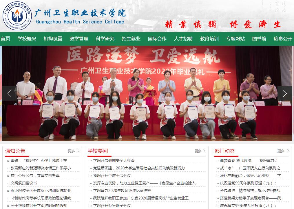 廣州衛(wèi)生職業(yè)技術(shù)學院是廣州市人民政府舉辦的公辦衛(wèi)生類高等職業(yè)院校,其辦學歷史最早可追溯至1902年,是百年歷史名校和現(xiàn)代醫(yī)護搖籃。在長期的辦學歷程中,學院以立德樹人為根本任務(wù),為社會培養(yǎng)培訓了數(shù)以萬計的高素質(zhì)衛(wèi)生技術(shù)人才,為醫(yī)療衛(wèi)生事業(yè)發(fā)展作出了重要貢獻。學院占地面積657畝,分白云、從化、天河、越秀四個校區(qū)。學院師資力量雄厚,現(xiàn)有各類在校生5000余人。開設(shè)有護理、助產(chǎn)、老年服務(wù)與管理、臨床醫(yī)學、藥學、口腔醫(yī)學、口腔醫(yī)學技術(shù)、醫(yī)學檢驗技術(shù)、醫(yī)學影像技術(shù)、康復治療技術(shù)、針灸推拿、中醫(yī)康復技術(shù)和醫(yī)學美容技術(shù)等13個專業(yè)。學院擁有1家附屬醫(yī)院及多家教學醫(yī)院,建有護理、藥學、口腔、檢驗、康復保健、醫(yī)學基礎(chǔ)、公共基礎(chǔ)等七大實訓中心。學生技能水平高,在國家和省、市等各級各類競賽中屢獲佳績,各類執(zhí)業(yè)資格考試通過率和畢業(yè)生就業(yè)率位居國內(nèi)同類院校前列。學院與美國、新加坡、芬蘭、日本、新西蘭、澳大利亞、馬來西亞以及港澳臺等境外機構(gòu)建立了良好的合作關(guān)系,開展科研合作、師資培訓,并搭建了境外實習、升學和就業(yè)平臺,為學生的發(fā)展提供了廣闊空間。學院是教育部首批“1+X”老年照護證書制度試點項目院校、國際護士執(zhí)業(yè)水平考試(ISPN)考點、國家職業(yè)資格中醫(yī)藥行業(yè)特有工種職業(yè)技能鑒定基地、國家衛(wèi)健委衛(wèi)生行業(yè)國家職業(yè)資格培訓鑒定試點院校、廣州市第111職業(yè)技能鑒定所、廣州市衛(wèi)生護理專業(yè)繼續(xù)教育基地、教育部全國醫(yī)護英語等級水平考試(METS)培訓點及定點考場、廣東省高考“3+X”職業(yè)技術(shù)教育專業(yè)技能《生物技術(shù)基礎(chǔ)》、《護理技能》考點等;開展了育嬰員、婦嬰護理專項能力等鑒定及居家養(yǎng)老照護技能等考證工作,為地方經(jīng)濟和社會發(fā)展提供了應(yīng)有的服務(wù)。面對新的歷史發(fā)展機遇,學院以習近平新時代中國特色社會主義思想為指導,堅持黨建引領(lǐng),實施“質(zhì)量建校、人才興校、創(chuàng)新強校、管理治校、文化立校”五大戰(zhàn)略,實現(xiàn)規(guī)模、結(jié)構(gòu)、質(zhì)量、效益協(xié)調(diào)發(fā)展,建設(shè)高水平衛(wèi)生職業(yè)技術(shù)學院。