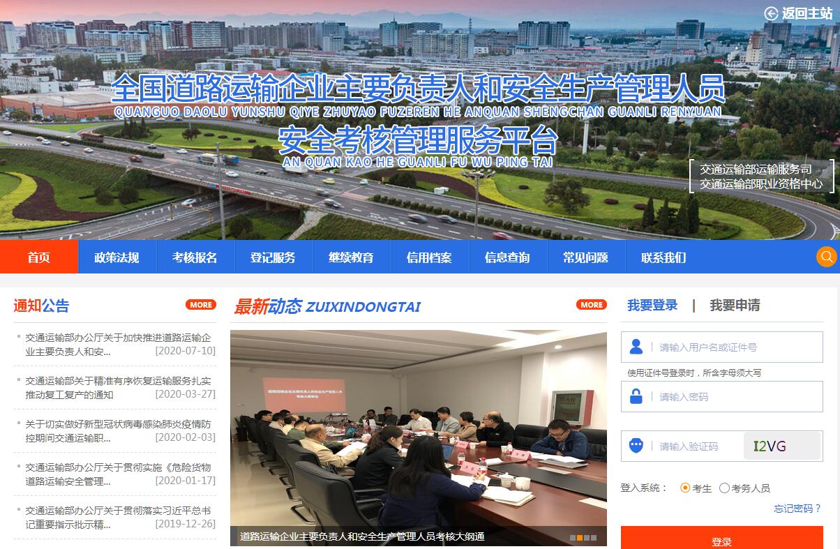 | 網(wǎng)站名稱: | 全國道路運(yùn)輸企業(yè)主要負(fù)責(zé)人和安全生產(chǎn)管理人員管理平臺(tái) | ||