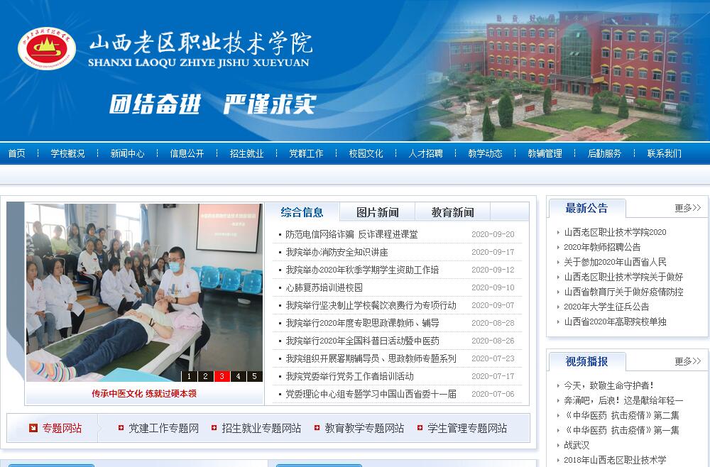 山西老區(qū)職業(yè)技術(shù)學院是經(jīng)山西省人民政府批準、教育部備案,具有頒發(fā)國家高等教育學歷證書資格的全日制綜合性高職院校。學院坐落在省城太原汾河西畔和平北路東流街,地理位置優(yōu)越,交通便利,環(huán)境優(yōu)美。經(jīng)過多年打造,現(xiàn)已成為一所多專業(yè)的綜合性職業(yè)院校,設有護理、助產(chǎn)、醫(yī)學美容技術(shù)、針灸推拿技術(shù)、眼視光技術(shù)、康復治療技術(shù)、藥學、中藥學、市場營銷、會計、導游、酒店管理等12個專業(yè)。學院配備了各專業(yè)教學實驗實訓的教學儀器,教學手段先進?,F(xiàn)有80余所醫(yī)院和協(xié)議單位,專門服務于學生校外實訓實習。學院現(xiàn)有在職教職工224人,其中專任教師171人,副教授以上職稱教師44人,碩士研究生17人,專業(yè)帶頭人9名,“雙師型”教師103名。學院秉承“為革命老區(qū)醫(yī)衛(wèi)事業(yè)和經(jīng)濟發(fā)展培養(yǎng)各類職業(yè)技能人才”的辦學宗旨,堅持“打造專業(yè)特色,提高辦學水平,強基固本,產(chǎn)學研相結(jié)合”的發(fā)展理念,形成了以護理、助產(chǎn)為品牌專業(yè),康復治療技術(shù)專業(yè)與山西綜合康復醫(yī)院合作辦學的特色專業(yè),臨床醫(yī)學類高職針灸推拿重點建設專業(yè),眼視光、藥學、會計等專業(yè)齊頭并進發(fā)展的良好趨勢。學院堅持“育人為本”的教育理念,積極引導學生開展豐富多彩的校園文化活動,為學生展示多方面的才能提供了廣闊的平臺。歷年為社會培養(yǎng)了一大批優(yōu)秀的護理工作者,許多人已成為省內(nèi)外二、三級醫(yī)療衛(wèi)生機構(gòu)的業(yè)務骨干。學生就業(yè)形勢良好,年平均就業(yè)率穩(wěn)步提高,得到了用人單位的廣泛認可。近年來,學院先后被教育部授予“高等教育先進集體”、省委授予“新社會組織先進黨組織”、省直工委授予“黨建工作先進單位”、中國老區(qū)建設促進會授予“老區(qū)建設先進集體”等榮譽稱號。學院主動適應高職教育改革需要,進一步明確了學院的辦學定位、辦學思路,全體教職工緊緊圍繞學院“十三五”發(fā)展規(guī)劃,按照“打好基礎(chǔ)、提升水平、促進發(fā)展、服務學生”的工作要求,始終以“弘揚老區(qū)精神,傳承紅色基因”為己任,抓內(nèi)涵、抓特色,落實“理實一體化”教學模式,努力把學院建設成為質(zhì)量上乘、特色鮮明的一流院校。