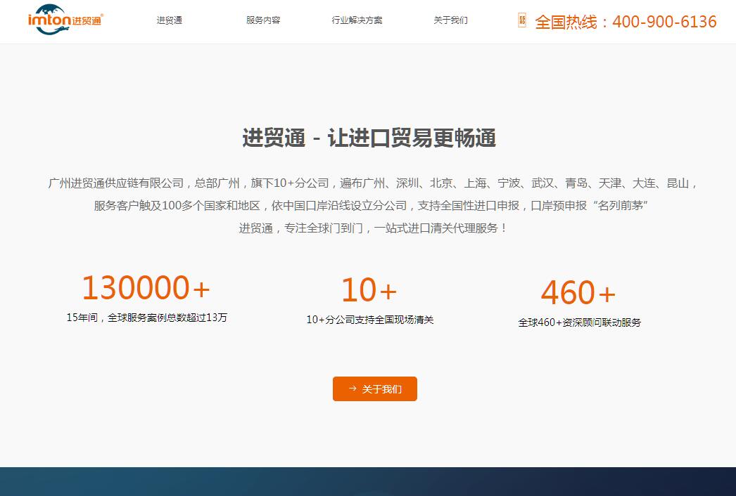 | 網(wǎng)站簡介: 進貿(mào)通(Imton.com.cn)是中國專業(yè)的進口清關(guān)代理公司,公司遍布廣州、深圳、北京、上海、寧波、武漢、青島、天津、大連、昆山,服務(wù)客戶觸及100多個國家和地區(qū),提供一般貿(mào)易進口代理、國際進口清關(guān)報關(guān)、倉儲配送、代付外匯等進口服務(wù)! |