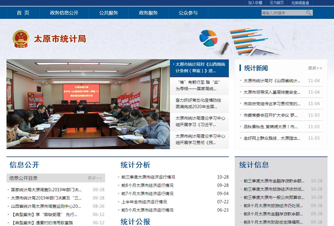 太原市統(tǒng)計局主要職責:(一)承擔組織領導和協(xié)調(diào)全市統(tǒng)計工作,確保統(tǒng)計數(shù)據(jù)真實、準確、及時。(二)健全完善全市國民經(jīng)濟核算體系。擬訂并組織實施全市國民經(jīng)濟核算制度和全市投入產(chǎn)出調(diào)查方案。核算全市國內(nèi)生產(chǎn)總值。匯編提供國民經(jīng)濟核算資料。監(jiān)督管理各縣(市、區(qū))、開發(fā)區(qū)國民經(jīng)濟核算工作。(三)根據(jù)上級部門重大國情國力普查計劃、方案,組織實施全市人口、經(jīng)濟、農(nóng)業(yè)等重大國情國力普查,匯總、整理和提供有關全市國情國力方面的統(tǒng)計數(shù)據(jù)。(四)組織實施農(nóng)林牧漁業(yè)、工業(yè)、建筑業(yè)、批發(fā)和零售業(yè)、住宿和餐飲業(yè)、房地產(chǎn)業(yè)、租賃和商務服務業(yè)、居民服務和其他服務業(yè)、文化體育和娛樂業(yè)以及裝卸搬運和其他運輸服務業(yè)、倉儲業(yè)、計算機服務業(yè)、軟件業(yè)、科技交流和推廣服務業(yè)、社會福利業(yè)等統(tǒng)計調(diào)查,收集、匯總、整理和提供有關調(diào)查的統(tǒng)計數(shù)據(jù)。綜合整理和提供地質(zhì)勘查、旅游、交通運輸、郵政、教育、衛(wèi)生、社會保障、公用事業(yè)等全市性基本統(tǒng)計數(shù)據(jù)。(五)組織實施管理能源、投資、消費、收入、科技、人口、社會發(fā)展基本情況、環(huán)境基本狀況等統(tǒng)計調(diào)查,收集、匯總、整理和提供有關調(diào)查的統(tǒng)計數(shù)據(jù)。綜合整理和提供資源、房屋、對外貿(mào)易、對外經(jīng)濟等全市性基本統(tǒng)計數(shù)據(jù)。(六)組織全市經(jīng)濟、社會、科技和資源環(huán)境統(tǒng)計調(diào)查。統(tǒng)一核定、管理、公布全市性基本統(tǒng)計資料。定期發(fā)布全市國民經(jīng)濟和社會發(fā)展情況統(tǒng)計信息。組織建立部門間統(tǒng)計信息共享制度和發(fā)布制度。(七)對國民經(jīng)濟、社會發(fā)展、科技進步和資源環(huán)境等情況進行統(tǒng)計分析、統(tǒng)計預測和統(tǒng)計監(jiān)督。向市委、市政府及有關部門提供統(tǒng)計信息和咨詢建議。(八)審核部門統(tǒng)計標準,依法審核或備案各部門統(tǒng)計調(diào)查項目、地方統(tǒng)計調(diào)查項目。指導專業(yè)統(tǒng)計基礎工作、統(tǒng)計基層業(yè)務基礎建設。組織建立服務業(yè)統(tǒng)計信息管理制度。建立健全統(tǒng)計數(shù)據(jù)質(zhì)量審核、監(jiān)控和評估制度。開展對重要統(tǒng)計數(shù)據(jù)的審核、監(jiān)控和評估。(九)監(jiān)督管理統(tǒng)計事業(yè)經(jīng)費。協(xié)助管理縣(市、區(qū))統(tǒng)計局領導干部。指導各縣 (市、區(qū))、開發(fā)區(qū)統(tǒng)計工作。負責全市統(tǒng)計專業(yè)技術隊伍建設。會同有關部門組織全市統(tǒng)計專業(yè)資格考試、職務評聘工作。(十)建立并管理全市統(tǒng)計信息自動化系統(tǒng)和統(tǒng)計數(shù)據(jù)庫系統(tǒng)。指導縣(市、區(qū))、開發(fā)區(qū)統(tǒng)計信息化系統(tǒng)建設。(十一)監(jiān)督檢查統(tǒng)計法規(guī)實施。查處各類統(tǒng)計違法行為。(十二)完成市委、市政府交辦的其他任務。