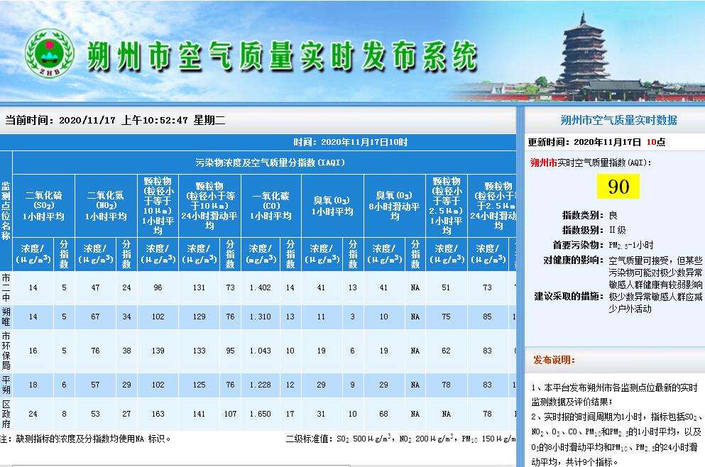 | 網(wǎng)站名稱: | 朔州市環(huán)境空氣質(zhì)量實時發(fā)布系統(tǒng) | ||
