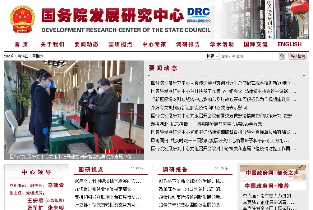 國務(wù)院發(fā)展研究中心是直屬中國國務(wù)院的政策研究和咨詢機(jī)構(gòu)。主要職能是研究中國國民經(jīng)濟(jì)、社會(huì)發(fā)展和改革開放中的全局性、戰(zhàn)略性、前瞻性、長期性以及熱點(diǎn)、難點(diǎn)問題,開展對(duì)重大政策的獨(dú)立評(píng)估和客觀解讀,為黨中央、國務(wù)院提供政策建議和咨詢意見。 自1980年成立以來,國務(wù)院發(fā)展研究中心在事關(guān)中國經(jīng)濟(jì)改革、對(duì)外開放和現(xiàn)代化建設(shè)的重大方向、目標(biāo)及戰(zhàn)略舉措方面,完成了一系列具有重要價(jià)值和重大影響的研究成果,提出了大量切實(shí)可行的政策建議,為中國經(jīng)濟(jì)社會(huì)的歷史性發(fā)展作出了貢獻(xiàn)。國務(wù)院發(fā)展研究中心歷來是政府智庫的人才高地,擁有一批著名的經(jīng)濟(jì)學(xué)家和高水平的專職研究隊(duì)伍,并協(xié)調(diào)集聚國內(nèi)外專家共同參與決策咨詢研究。我們始終堅(jiān)持“唯實(shí)求真,守正出新”的核心價(jià)值,崇尚實(shí)事求是、客觀理性和專業(yè)主義精神,把人才、思想和高質(zhì)量成果作為我們最寶貴的財(cái)富。智庫是國家軟實(shí)力的重要載體,承擔(dān)著推進(jìn)國家治理體系和治理能力現(xiàn)代化的歷史重任。國務(wù)院發(fā)展研究中心將繼續(xù)開拓創(chuàng)新,銳意進(jìn)取,努力建設(shè)成為高質(zhì)量服務(wù)中央決策的核心智庫、科學(xué)評(píng)估重大決策的重點(diǎn)機(jī)構(gòu)、準(zhǔn)確解讀重大政策的新型組織、有效整合智庫資源的高端平臺(tái),為協(xié)調(diào)推進(jìn)國家“四個(gè)全面”戰(zhàn)略布局,貢獻(xiàn)自己的智慧和力量。國務(wù)院發(fā)展研究中心將繼續(xù)保持并發(fā)展與政府部門、研究機(jī)構(gòu)和企業(yè)界的廣泛聯(lián)系和密切合作,用高水平的研究成果和咨詢意見為政府和社會(huì)服務(wù)。我們將繼續(xù)保持并發(fā)展同國際社會(huì)的廣泛聯(lián)系,積極開展與重要國際組織和各國智庫的交流與合作。國務(wù)院發(fā)展研究中心是從事綜合性政策研究和決策咨詢的國務(wù)院直屬事業(yè)單位。主要工作范圍是:(一)圍繞國民經(jīng)濟(jì)、社會(huì)發(fā)展和改革開放中的全局性、戰(zhàn)略性、前瞻性、長期性以及熱點(diǎn)、難點(diǎn)問題研究,為黨中央、國務(wù)院提供政策建議和咨詢意見,為制定國家中長期發(fā)展規(guī)劃和區(qū)域發(fā)展政策提出建議;接受委托參與或組織對(duì)有關(guān)部門和地區(qū)擬定的發(fā)展規(guī)劃進(jìn)行研究和論證,提出意見和建議。(二)研究國民經(jīng)濟(jì)的發(fā)展動(dòng)態(tài),分析宏觀經(jīng)濟(jì)形勢(shì),對(duì)宏觀經(jīng)濟(jì)政策的綜合運(yùn)用提出意見和建議。(三)研究產(chǎn)業(yè)經(jīng)濟(jì)發(fā)展和產(chǎn)業(yè)政策,對(duì)產(chǎn)業(yè)機(jī)構(gòu)、投資結(jié)構(gòu)、企業(yè)組織結(jié)構(gòu)、所有制結(jié)構(gòu)的調(diào)整方向,對(duì)國民經(jīng)濟(jì)發(fā)展的技術(shù)選擇、技術(shù)創(chuàng)新和高新技術(shù)發(fā)展政策提供咨詢意見和建議。(四)研究農(nóng)業(yè)和農(nóng)村經(jīng)濟(jì)結(jié)構(gòu)調(diào)整、農(nóng)村經(jīng)濟(jì)制度變遷、農(nóng)村經(jīng)濟(jì)和社會(huì)管理及城鄉(xiāng)統(tǒng)籌發(fā)展問題。(五)研究我國對(duì)外開放的新情況、新問題;研究對(duì)外貿(mào)易政策以及利用外資政策,提出對(duì)策建議;研究世界經(jīng)濟(jì)發(fā)展的趨勢(shì)及其經(jīng)驗(yàn)教訓(xùn),為我國改革和發(fā)展提供借鑒。(六)研究國民經(jīng)濟(jì)和社會(huì)發(fā)展中的人力資源開發(fā)、收入分配與社會(huì)保障政策和自然資源的合理開發(fā)與利用、生態(tài)平衡與環(huán)境保護(hù)政策。(七)受黨中央、國務(wù)院委托,對(duì)重大經(jīng)濟(jì)社會(huì)政策方案及實(shí)施效果進(jìn)行評(píng)估。開展國家重大方針政策解讀工作,介紹中國經(jīng)濟(jì)社會(huì)發(fā)展政策及經(jīng)驗(yàn)。(八)承擔(dān)黨中央、國務(wù)院領(lǐng)導(dǎo)同志交辦的文件文稿起草工作。(九)開展國際合作研究,組織與有關(guān)國際組織和研究機(jī)構(gòu)的交流,向黨中央、國務(wù)院提供涉外參考資料和政策建議。(十)承辦國務(wù)院交辦的其他事項(xiàng)。