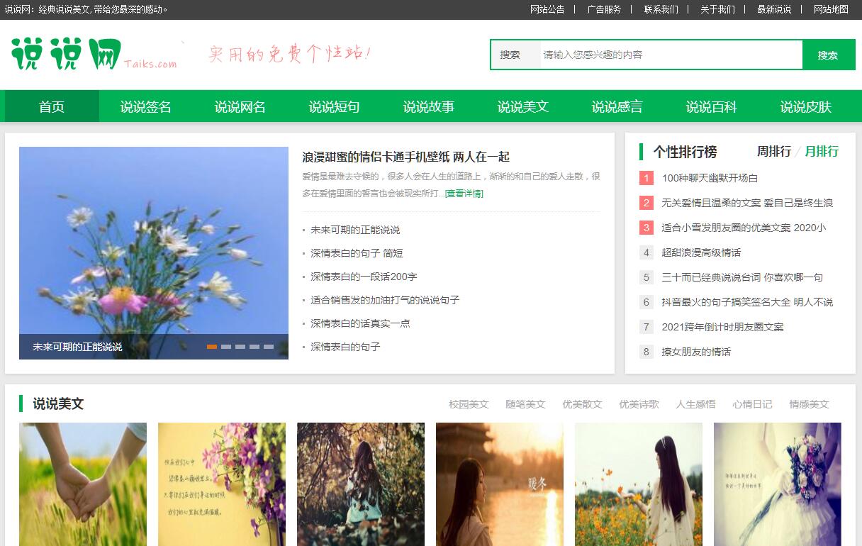 | 網(wǎng)站簡介: 說說網(wǎng)(www.taiks.com)提供各種人生感悟的說說美文句子。有說說簽名、說說網(wǎng)名、說說短句、說說美文、說說故事、傷感說說及愛情說說等,帶給您最深的感動(dòng)。 |