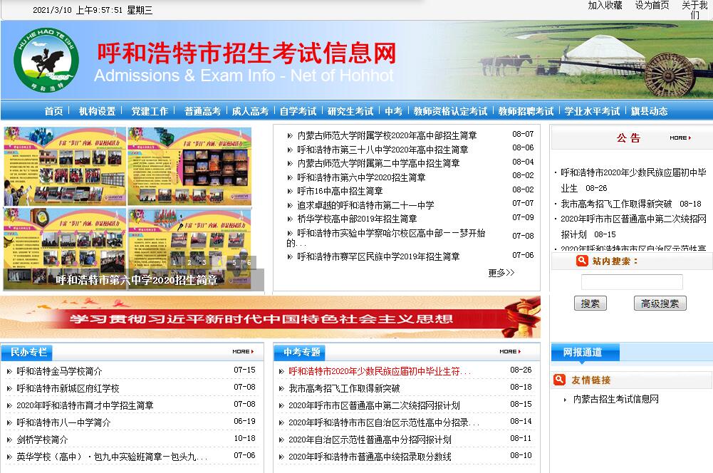 | 網(wǎng)站名稱: | 呼和浩特市考試招生信息網(wǎng) | ||