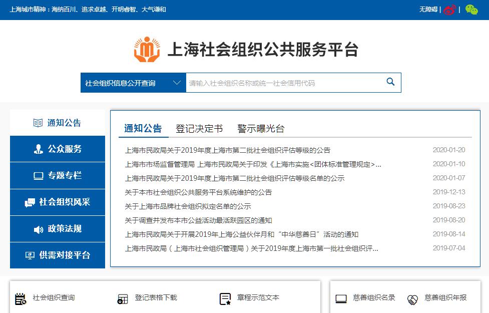 | 網站簡介: 上海社會組織公共服務平臺由上海市民政局(上海市社會組織管理局)主辦。 |