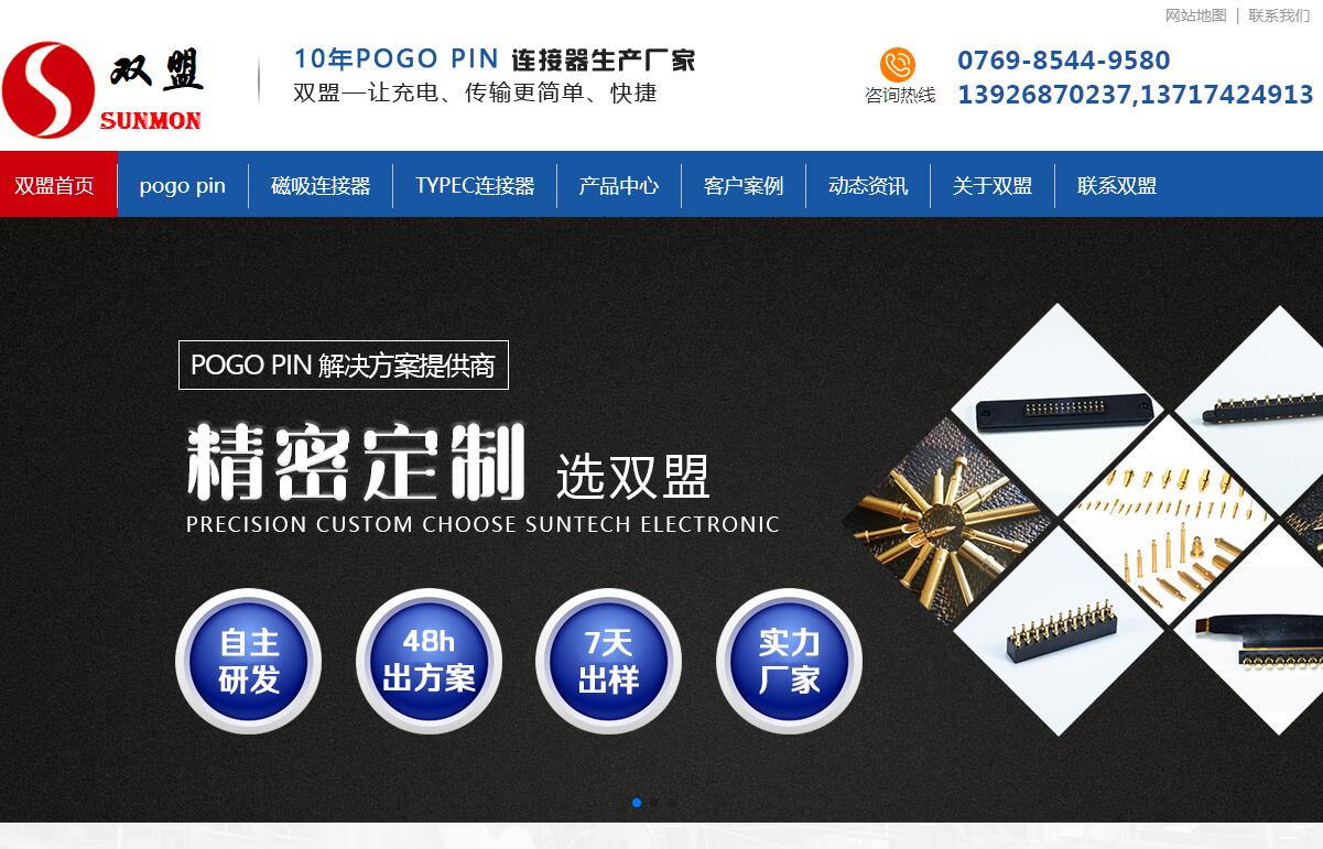 | 網(wǎng)站簡介: 東莞市雙盟電子有限公司以下簡稱[雙盟電子],成立于2009年8月25日,現(xiàn)有員工200人,廠房面積近12000平方米,十余年來專注研發(fā)、生產(chǎn)、銷售POGO PIN彈簧頂針連接器;USB3.1 、TYPEC連接器、TYPE C擴(kuò)展塢、HDMI高清線;專注研發(fā)定制:精密彈簧針磁吸式連接器,精密磁吸式充電線,大電流快充TYPE C充電線。雙盟電子始終堅(jiān)持以研發(fā)技術(shù)導(dǎo)向?yàn)楹诵模a(chǎn)品研發(fā)和應(yīng)用服務(wù)于一體,以品質(zhì)為根本,為客戶提供高品質(zhì),高效,具有競爭力的產(chǎn)品和服務(wù)。 |