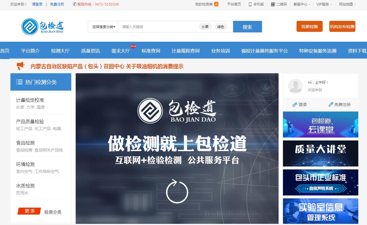 | 網(wǎng)站簡介: 包檢道_包頭市質(zhì)量基礎(chǔ)設(shè)施公共服務(wù)平臺“企業(yè)質(zhì)量提升一站式服務(wù)平臺”平臺(以下簡稱平臺)是由包頭市產(chǎn)品質(zhì)量計量檢測所主辦。 |