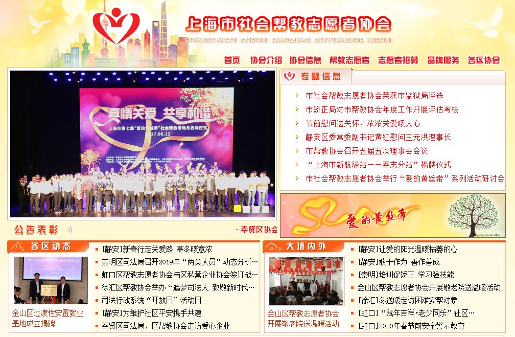 上海市社會幫教志愿者協(xié)會(下面簡稱市協(xié)會)成立于2000年9月,是全國首家協(xié)助司法行政部門,專門從事對社區(qū)矯正、刑釋人員開展安置幫教特殊對象的志愿服務(wù),為被害人及其家屬提供關(guān)護(hù)項(xiàng)目的公益性社會組織。業(yè)務(wù)主管部門是上海市司法局,業(yè)務(wù)指導(dǎo)部門是上海市社區(qū)矯正管理局。截止2016年12月底全市經(jīng)注冊登記志愿者21330名,會員單位705家。市協(xié)會現(xiàn)有理事長1名,副理事長8名,秘書長1人(兼),常務(wù)理事34名。市協(xié)會下設(shè)項(xiàng)目投資部、組織宣傳部、化解矛盾部、矯正幫扶部和辦公室。協(xié)會通過“愛的黃絲帶”社會幫教活動(dòng)月,“幫扶 新航 和諧”等專項(xiàng)招聘會,“關(guān)愛行動(dòng)”、“矯正幫扶”等品牌活動(dòng)‘在參與預(yù)防和減少重新違法犯罪體系建設(shè)中,發(fā)揮了不可或缺的作用。取得了令人矚目的成果,得到了社會的認(rèn)可。15年來,市協(xié)會先后榮獲“上海市刑釋解教人員安幫教工作先進(jìn)集體”“上海市時(shí)候綜合治理先進(jìn)集體”“上海市先進(jìn)社會組織”等多項(xiàng)榮譽(yù)稱號。