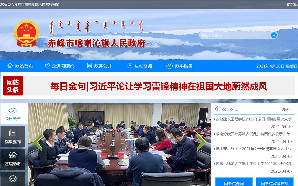 | 網(wǎng)站簡介: 喀喇沁旗人民政府官方門戶網(wǎng)站。 |