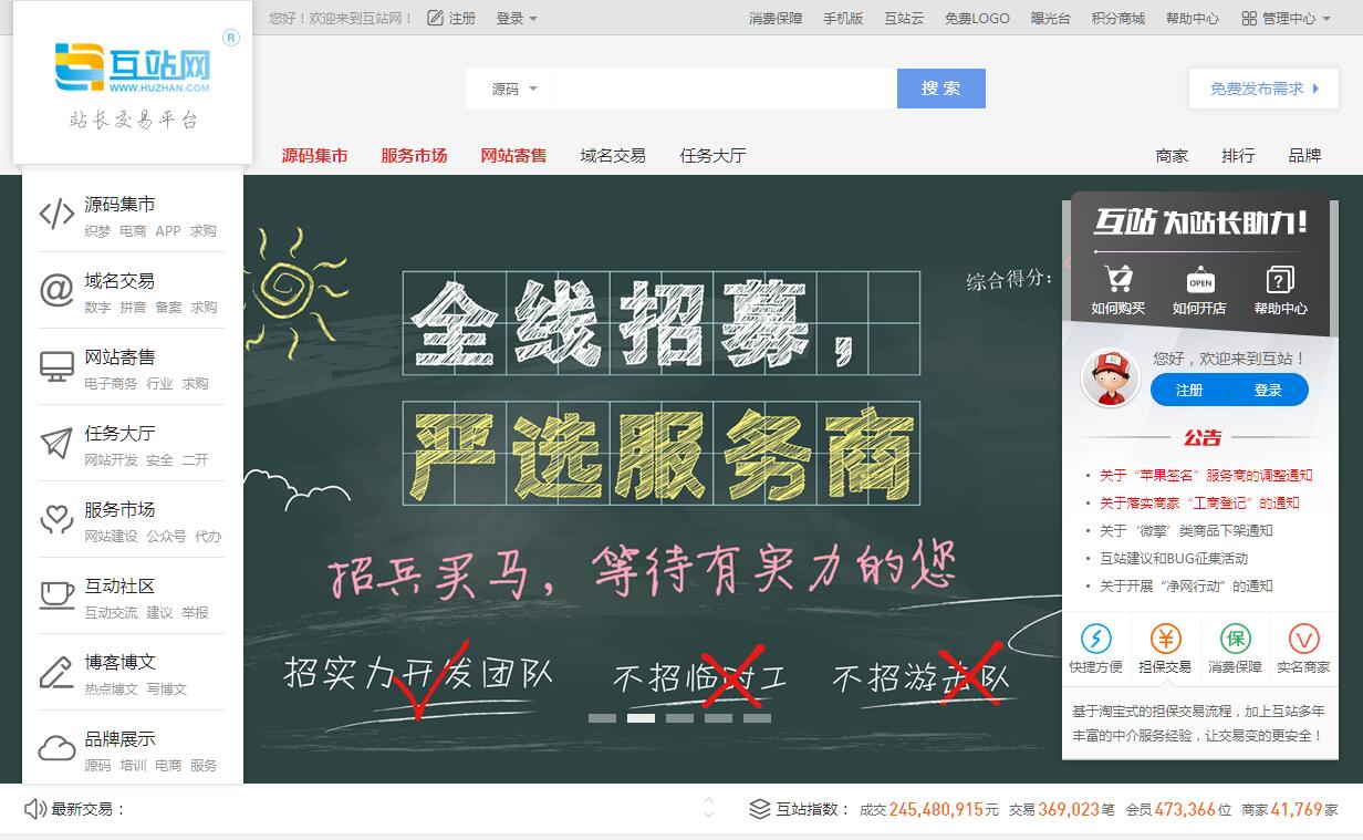 | 網(wǎng)站簡介: 互站網(wǎng),國內(nèi)知名的站長交易服務(wù)中心;網(wǎng)站交易、源碼交易、域名交易、鏈接交易、廣告買賣、建站美工任務(wù);安全快捷的站長交易、出售、求購、交流分享平臺。 |
