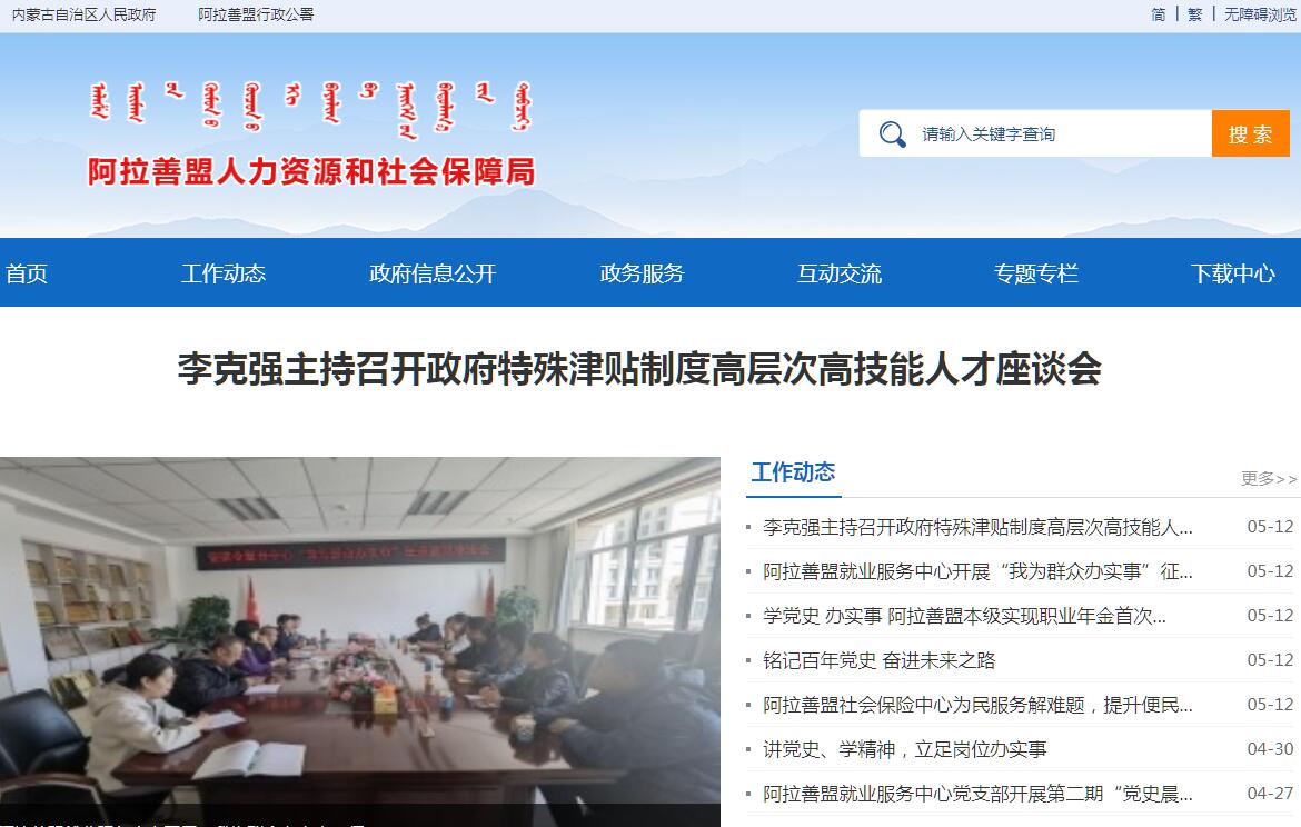 阿拉善盟人力資源和社會保障局官方網站。