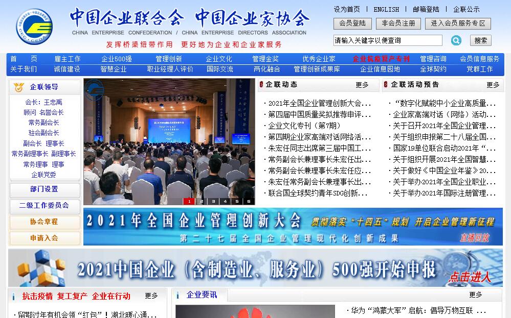 | 網(wǎng)站簡(jiǎn)介: 中國(guó)企業(yè)聯(lián)合會(huì),中國(guó)企業(yè)家協(xié)會(huì)官方網(wǎng)站。 |