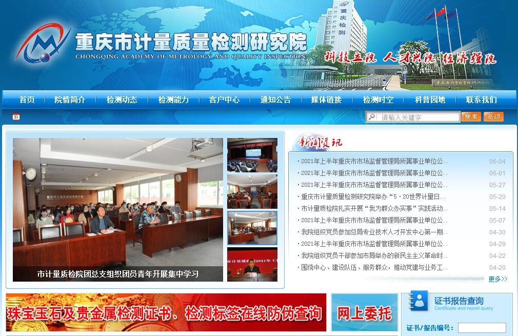 | 網(wǎng)站簡介: 重慶市計量質(zhì)量檢測研究院官方網(wǎng)站。 |
