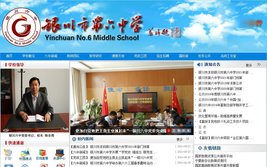 | 網(wǎng)站簡(jiǎn)介: 銀川市第六中學(xué)官方網(wǎng)站。 |