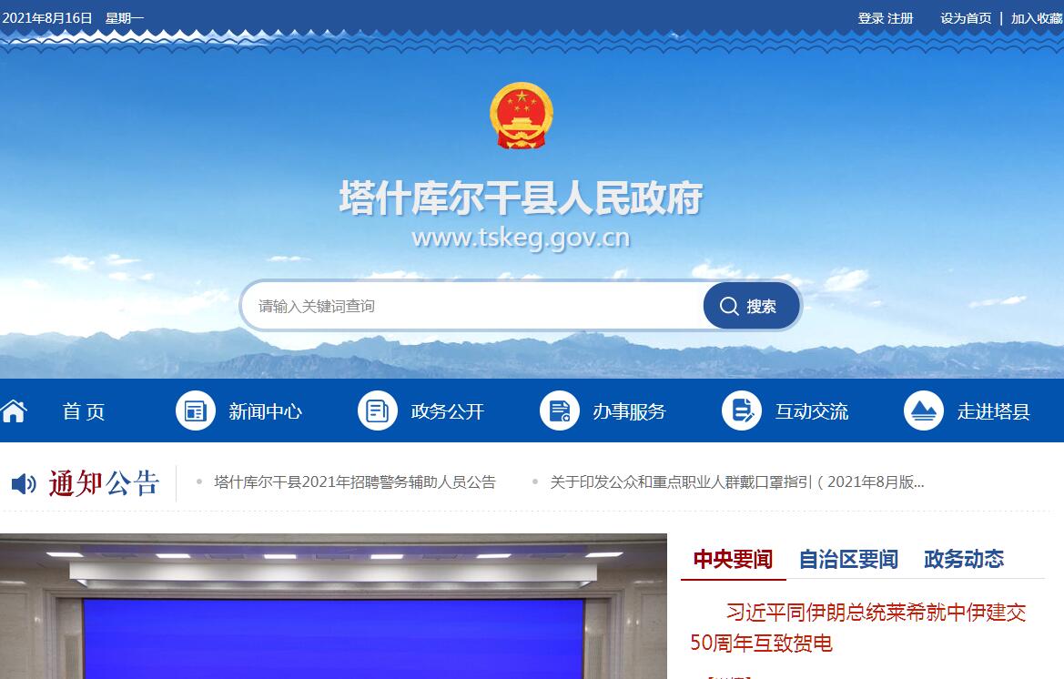 | 網(wǎng)站簡介: 塔什庫爾干塔吉克自治縣人民政府官方門戶網(wǎng)站。 |