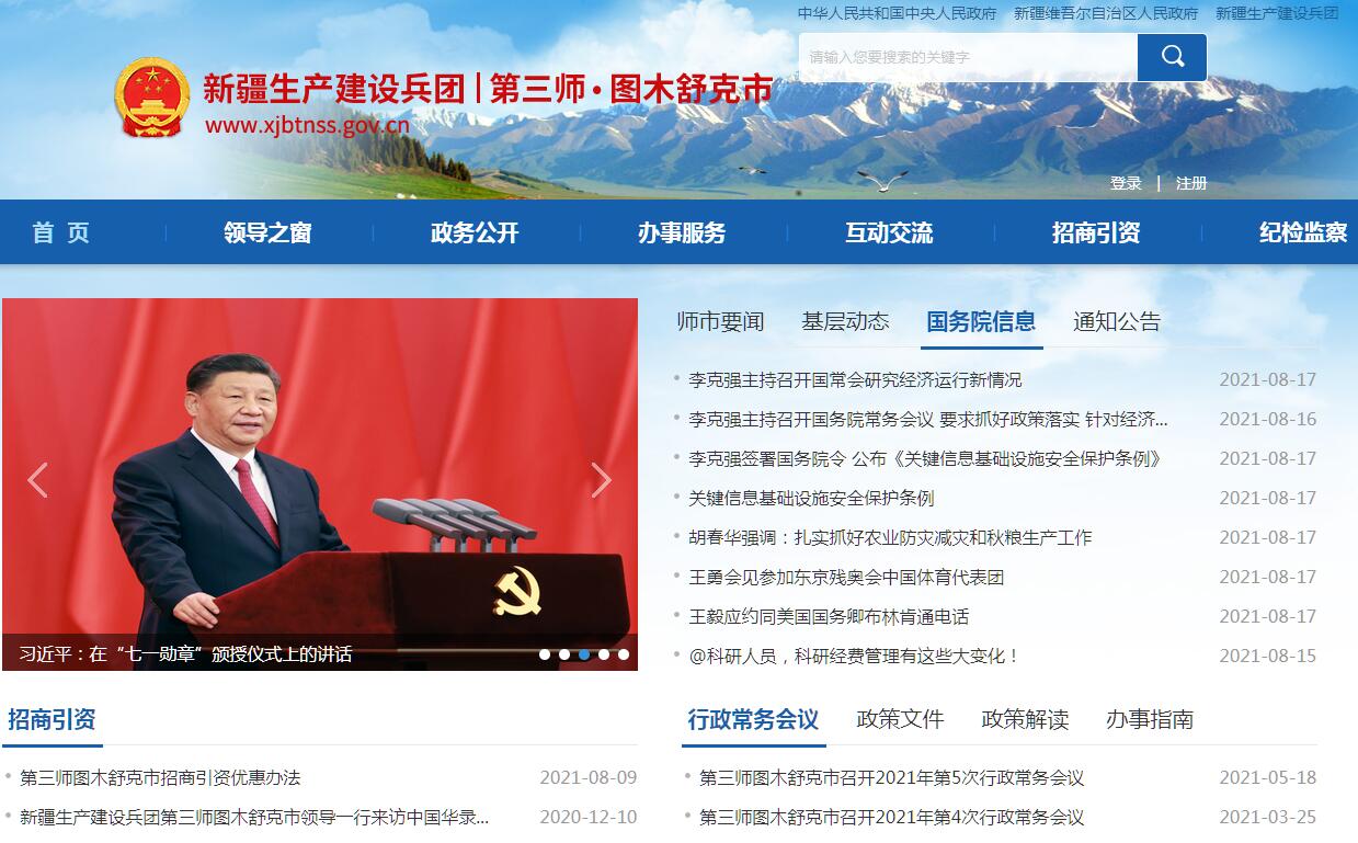| 網(wǎng)站簡介: 第三師圖木舒克市官方門戶網(wǎng)站。 |