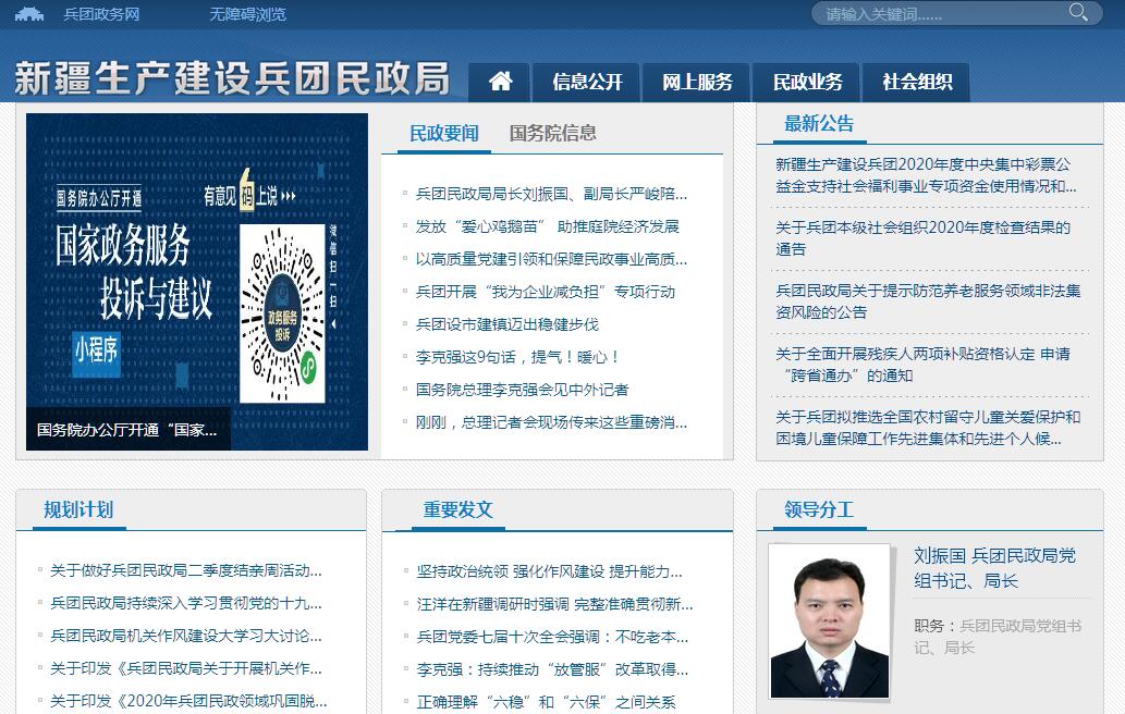 | 網(wǎng)站名稱(chēng): | 新疆生產(chǎn)建設(shè)兵團(tuán)民政局 | ||