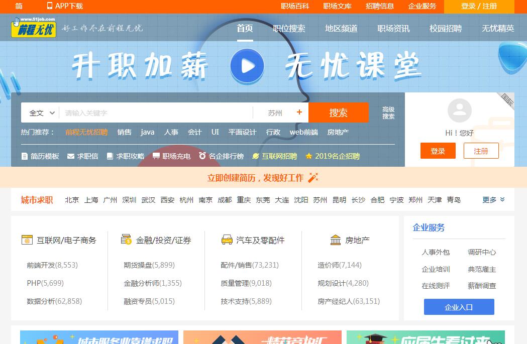 “前程無(wú)憂(yōu)”(NASDAQ: JOBS) 是中國(guó)具有廣泛影響力的人力資源服務(wù)供應(yīng)商,在美國(guó)上市的中國(guó)人力資源服務(wù)企業(yè)。它運(yùn)用了網(wǎng)絡(luò)媒體及先進(jìn)的移動(dòng)端信息技術(shù),加上經(jīng)驗(yàn)豐富的專(zhuān)業(yè)顧問(wèn)隊(duì)伍,提供包括招聘獵頭、培訓(xùn)測(cè)評(píng)和人事外包在內(nèi)的全方位專(zhuān)業(yè)人力資源服務(wù),現(xiàn)在全國(guó)25個(gè)城市設(shè)有服務(wù)機(jī)構(gòu),是國(guó)內(nèi)領(lǐng)先的專(zhuān)業(yè)人力資源服務(wù)機(jī)構(gòu)。“前程無(wú)憂(yōu)”招聘獵頭服務(wù)在國(guó)內(nèi)創(chuàng)立了網(wǎng)站+獵頭+RPO+校園招聘+管理軟件的全方位招聘方案。每年為數(shù)十萬(wàn)家企業(yè)成功招募所需人才,幫助企業(yè)高效準(zhǔn)確地鎖定目標(biāo),用短的時(shí)間、經(jīng)濟(jì)的成本找到合適的人才。同時(shí),“前程無(wú)憂(yōu)”擁有過(guò)億的個(gè)人用戶(hù),每年成功為全國(guó)求職者提供適合的工作和職業(yè)發(fā)展機(jī)會(huì)。“前程無(wú)憂(yōu)”的專(zhuān)業(yè)培訓(xùn)測(cè)評(píng)顧問(wèn)為企業(yè)量身定制各種公開(kāi)課程、內(nèi)部培訓(xùn)、實(shí)戰(zhàn)模擬及體驗(yàn)式培訓(xùn),幫助企業(yè)員工迅速提高職業(yè)水平、加強(qiáng)專(zhuān)業(yè)知識(shí)和綜合素質(zhì),輕松面對(duì)工作挑戰(zhàn)?!扒俺虩o(wú)憂(yōu)”同時(shí)提供權(quán)威的人才測(cè)評(píng)工具及服務(wù),幫助企業(yè)在招聘選拔、人才評(píng)估及發(fā)展、素質(zhì)模型建立方面提供完整的解決方案。“前程無(wú)憂(yōu)”的人事外包服務(wù)提供人事事務(wù)代理、人才派遣從員工招聘到退工的一站式服務(wù)與咨詢(xún),幫助企業(yè)更好地管理人力資源,節(jié)約成本,讓員工輕裝上陣,全力以赴!“前程無(wú)憂(yōu)”組織薪酬調(diào)查、調(diào)研咨詢(xún)和典范雇主評(píng)選等一系列人力資源咨詢(xún)和評(píng)選活動(dòng),提供企業(yè)人力資源的前沿理論和管理實(shí)踐,為企業(yè)人才管理提供分析報(bào)告和決策參考。前程無(wú)憂(yōu)人才網(wǎng)面向全國(guó),提供2018最新最全最準(zhǔn)確的招聘網(wǎng)站信息,為企業(yè)和求職者提供人才招聘、求職、找工作、培訓(xùn)等在內(nèi)的全方位的人力資源服務(wù),更多求職找工作信息盡在前程無(wú)憂(yōu)!