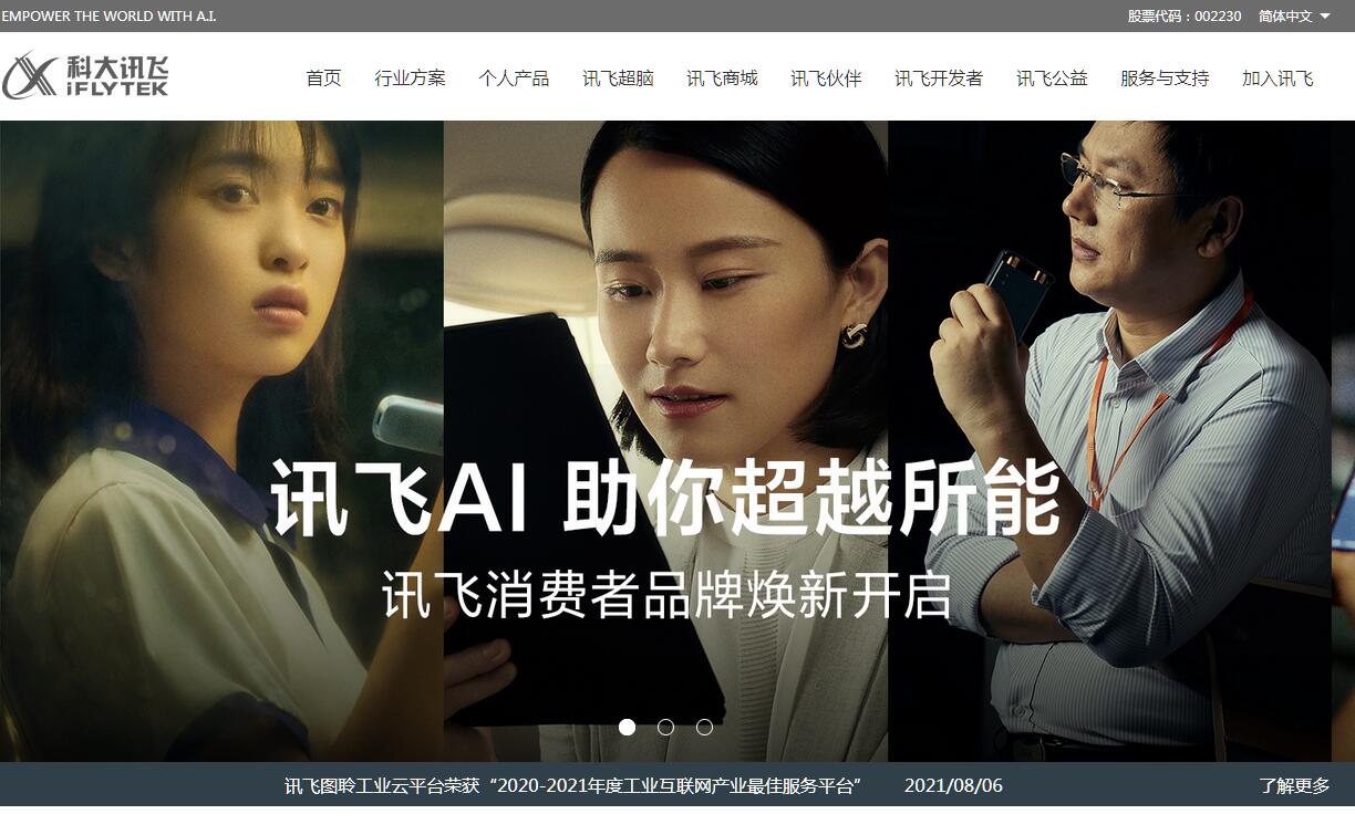 | 網(wǎng)站簡介: 科大訊飛是亞太地區(qū)知名的智能語音和人工智能上市企業(yè),致力于讓機(jī)器能聽會說,能理解會思考,用人工智能建設(shè)美好世界。 |