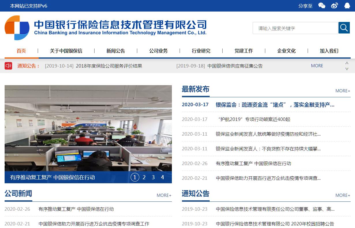 中國銀行保險信息技術(shù)管理有限公司(簡稱中國銀保信)成立于2013年7月,是經(jīng)國務(wù)院批準(zhǔn),由中國銀行保險監(jiān)督管理委員會直接管理的金融基礎(chǔ)設(shè)施運營管理單位,注冊資本20億元,總部設(shè)在北京。中國銀保信自成立以來,即肩負(fù)支持監(jiān)管、服務(wù)行業(yè)發(fā)展、保護消費、參與社會治理等多重使命。公司始終堅持以黨的建設(shè)為統(tǒng)領(lǐng),促進黨建與業(yè)務(wù)協(xié)同發(fā)展,在服務(wù)監(jiān)管效能提升、推進行業(yè)轉(zhuǎn)型升級、輔助社會治理等方面發(fā)揮了重要作用。成立至今,中國銀保信以“兩地四中心”基礎(chǔ)設(shè)施布局為依托,以穩(wěn)定可靠的安全體系為保障,構(gòu)建了覆蓋全險種、全業(yè)務(wù)流程數(shù)據(jù)的保險業(yè)信息共享格局,架通了行業(yè)間及跨行業(yè)信息交互的橋梁,為保險業(yè)改革發(fā)展持續(xù)賦能,并且正在逐步探索為銀行業(yè)提供服務(wù)。目前,公司初步形成了大型生產(chǎn)系統(tǒng)的管理和支撐能力,以及大數(shù)據(jù)集中管理、統(tǒng)一應(yīng)用、深入挖掘、價值轉(zhuǎn)化等能力。未來,中國銀保信將立足行業(yè),聚焦主業(yè),持續(xù)加強政治建設(shè)和業(yè)務(wù)建設(shè),推進公司治理現(xiàn)代化,以數(shù)據(jù)和技術(shù)為核心,不斷加強銀行保險業(yè)金融基礎(chǔ)設(shè)施建設(shè),為監(jiān)管和市場做好服務(wù)。
